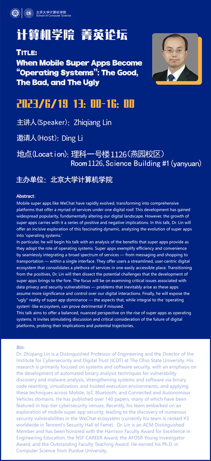 主讲人(Speaker)Zhiqiang Lin