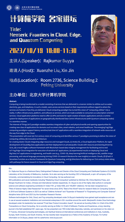 报告题目(Title)Neoteric Frontiers in Cloud, Edge, and Quantum Computing