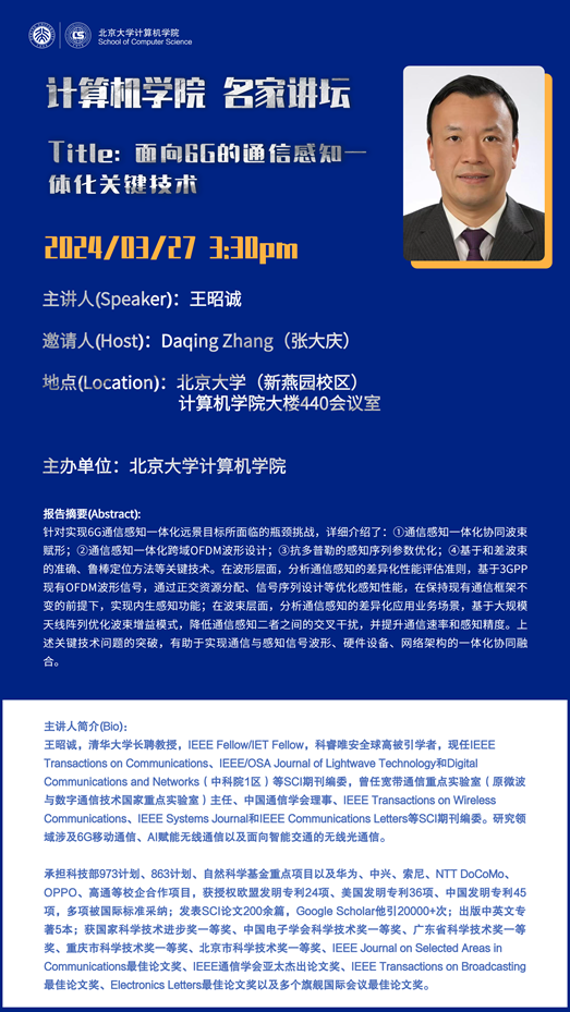 计算机学院系列讲座名家讲坛第12期——面向6G的通信感知一体化关键技术