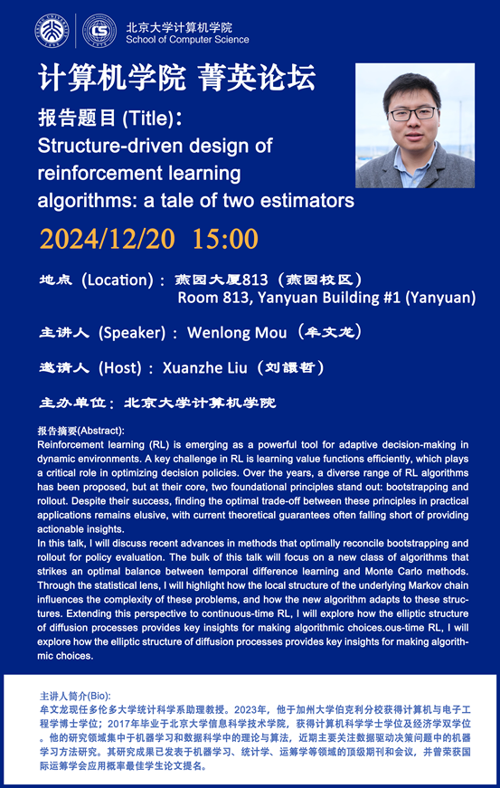 计算机学院系列讲座菁英论坛第40期——Structure-driven design of reinforcement learning algorithms: a tale of two estimators