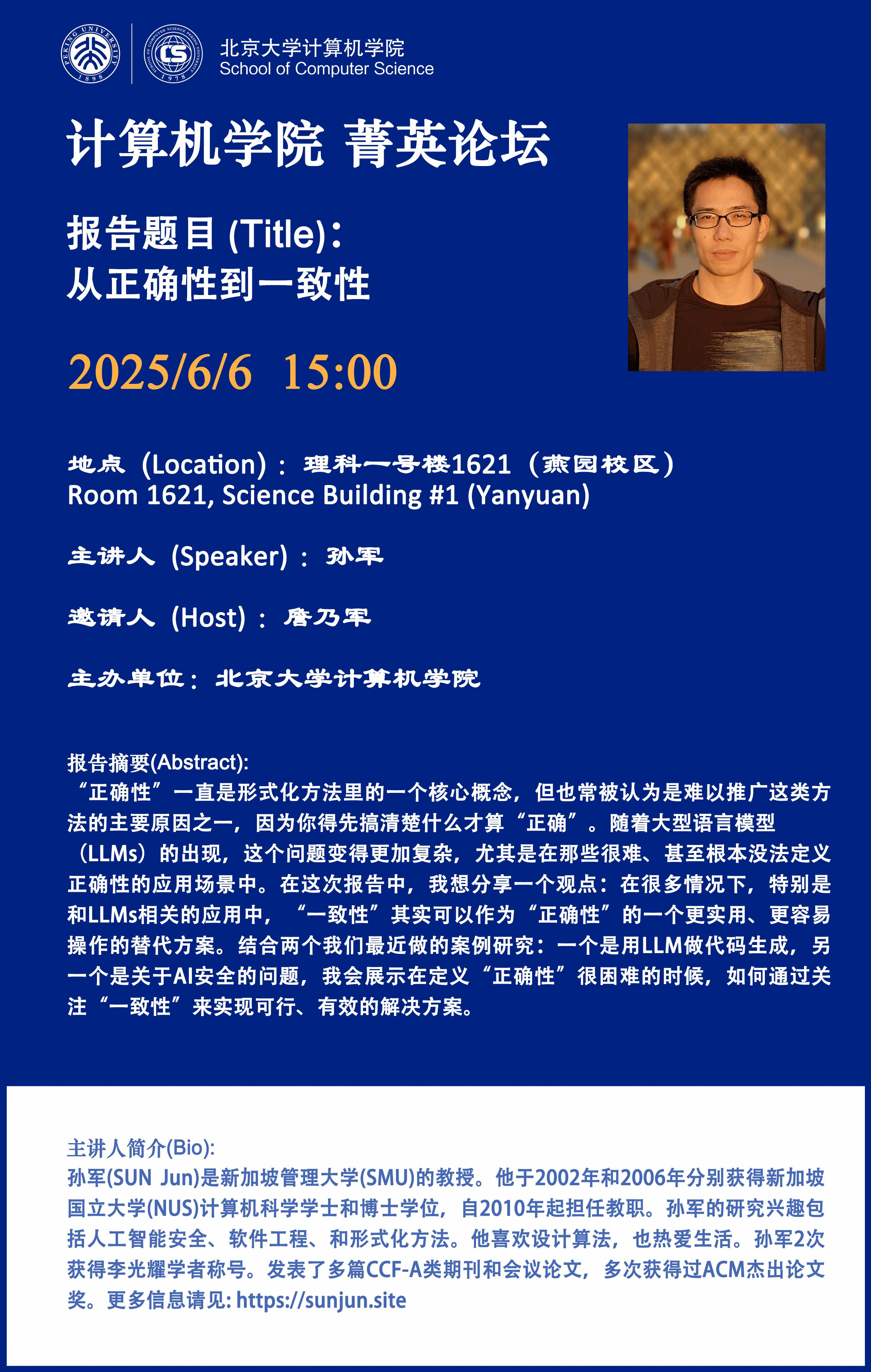 报告题目(Title):从正确性到一致性