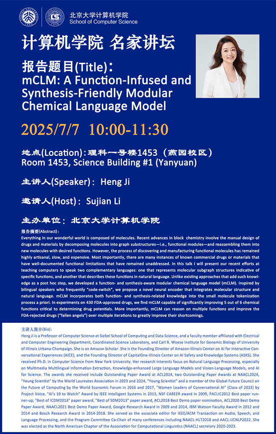 计算机学院系列讲座名家讲坛第25期——mCLM: A Function-Infused and Synthesis-Friendly Modular Chemical Language Model (or: mCLM: 一个融合功能且易于合成的模块化化学语言模型)