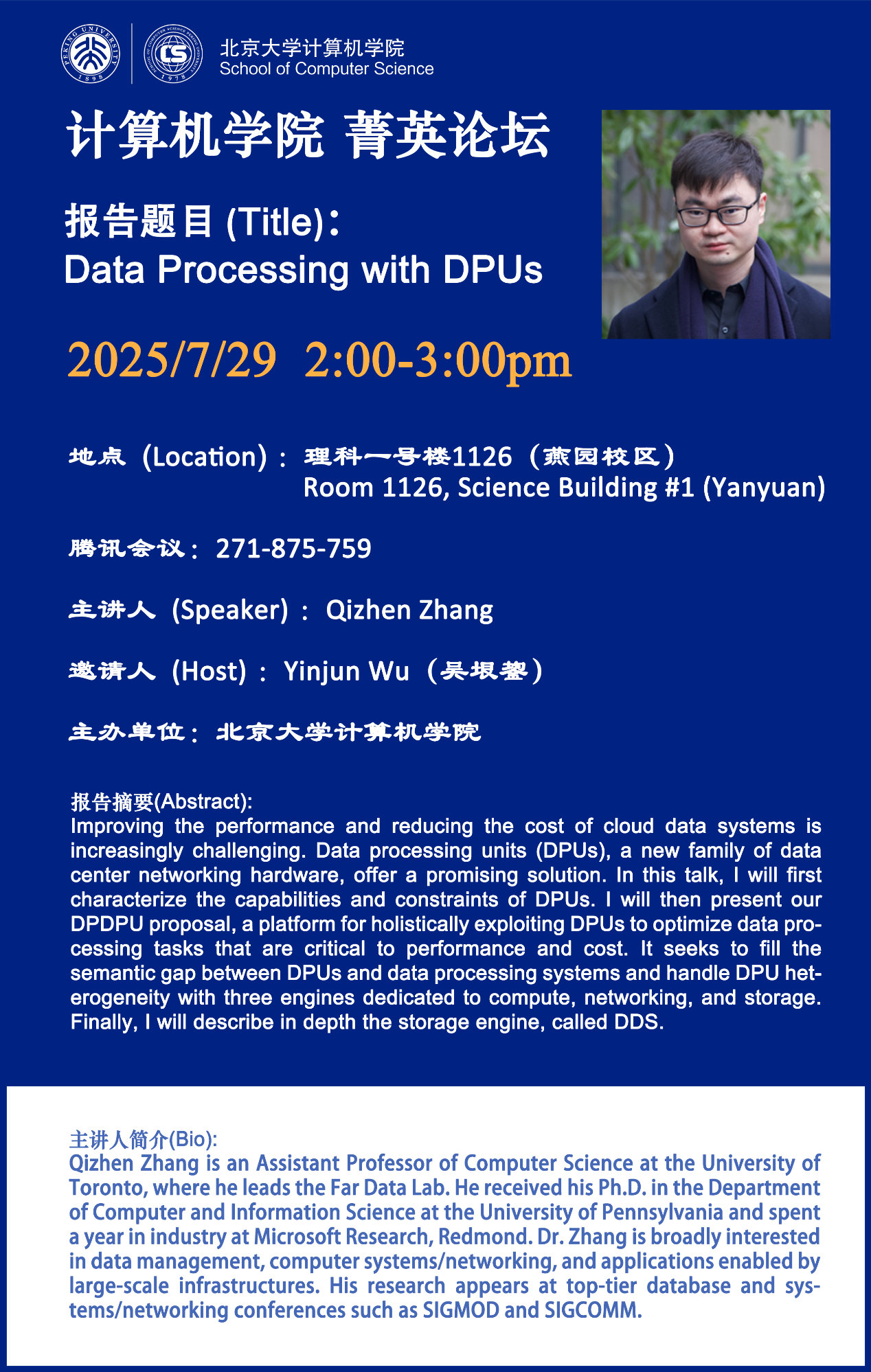 计算机学院系列讲座菁英论坛第45期——Data Processing with DPUs