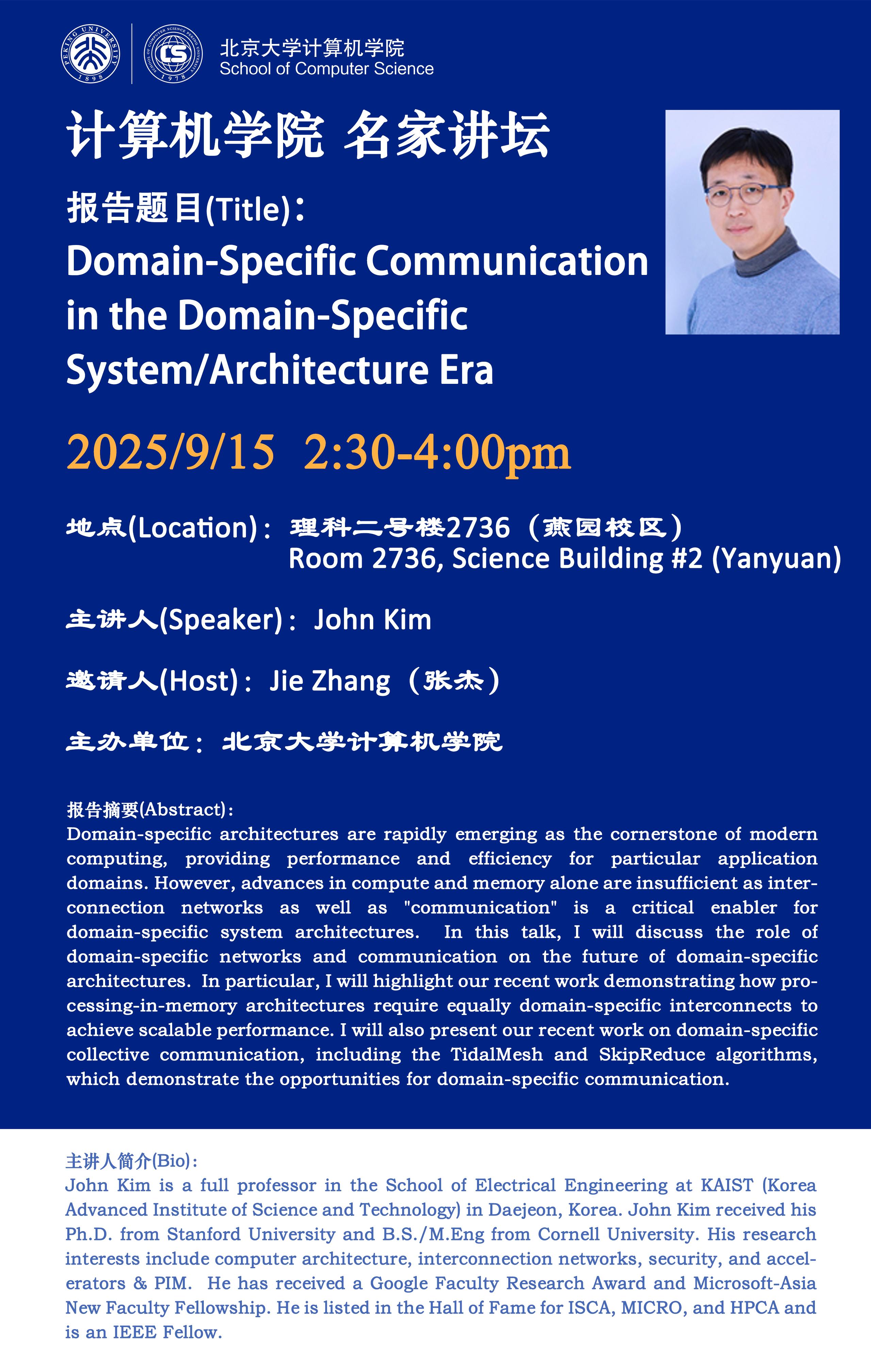 计算机学院系列讲座名家讲坛第29期——Domain-Specific Communication in the Domain-Specific System/Architecture Era