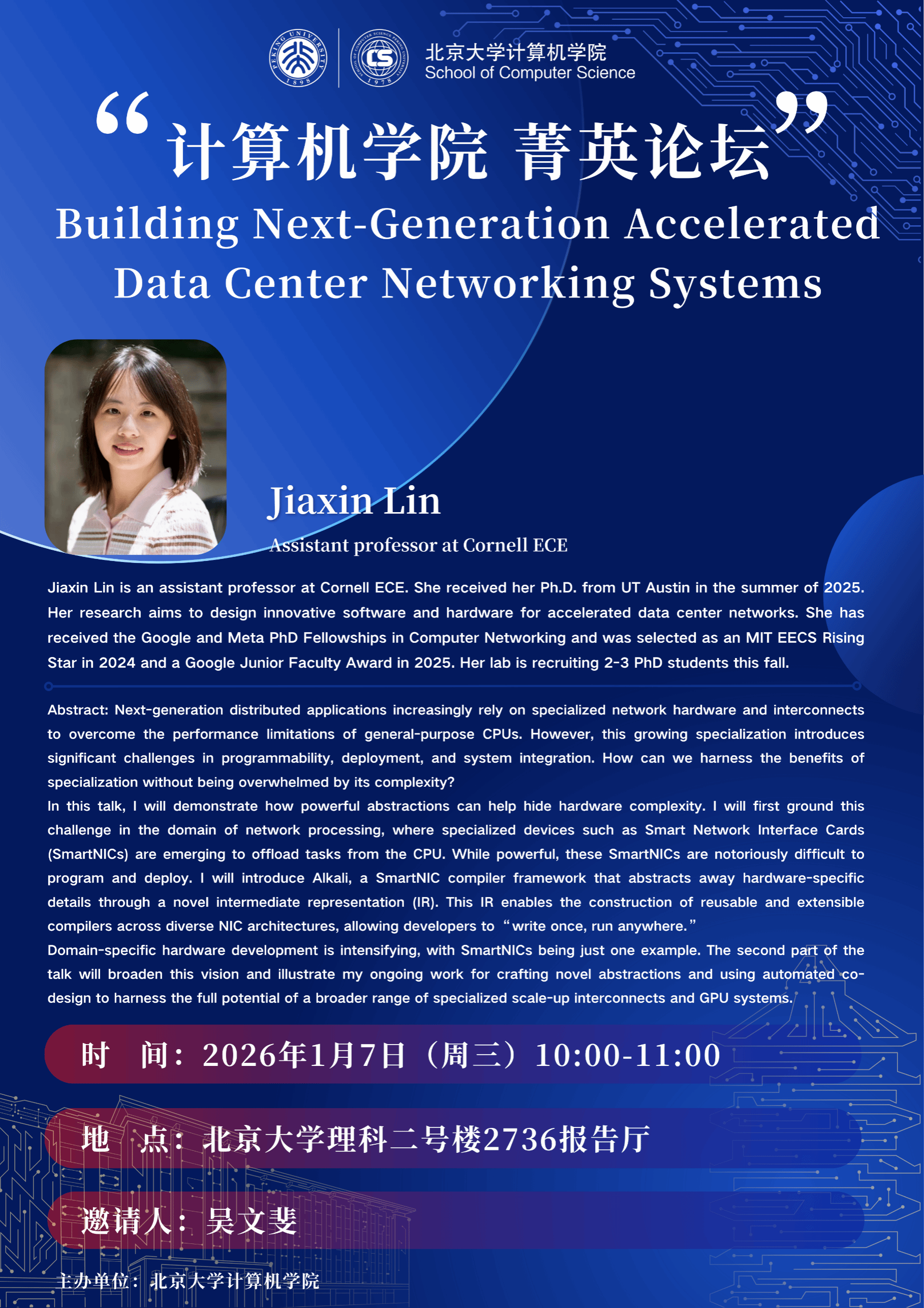 计算机学院系列讲座菁英论坛第48期——Building Next-Generation Accelerated Data Center Networking Systems
