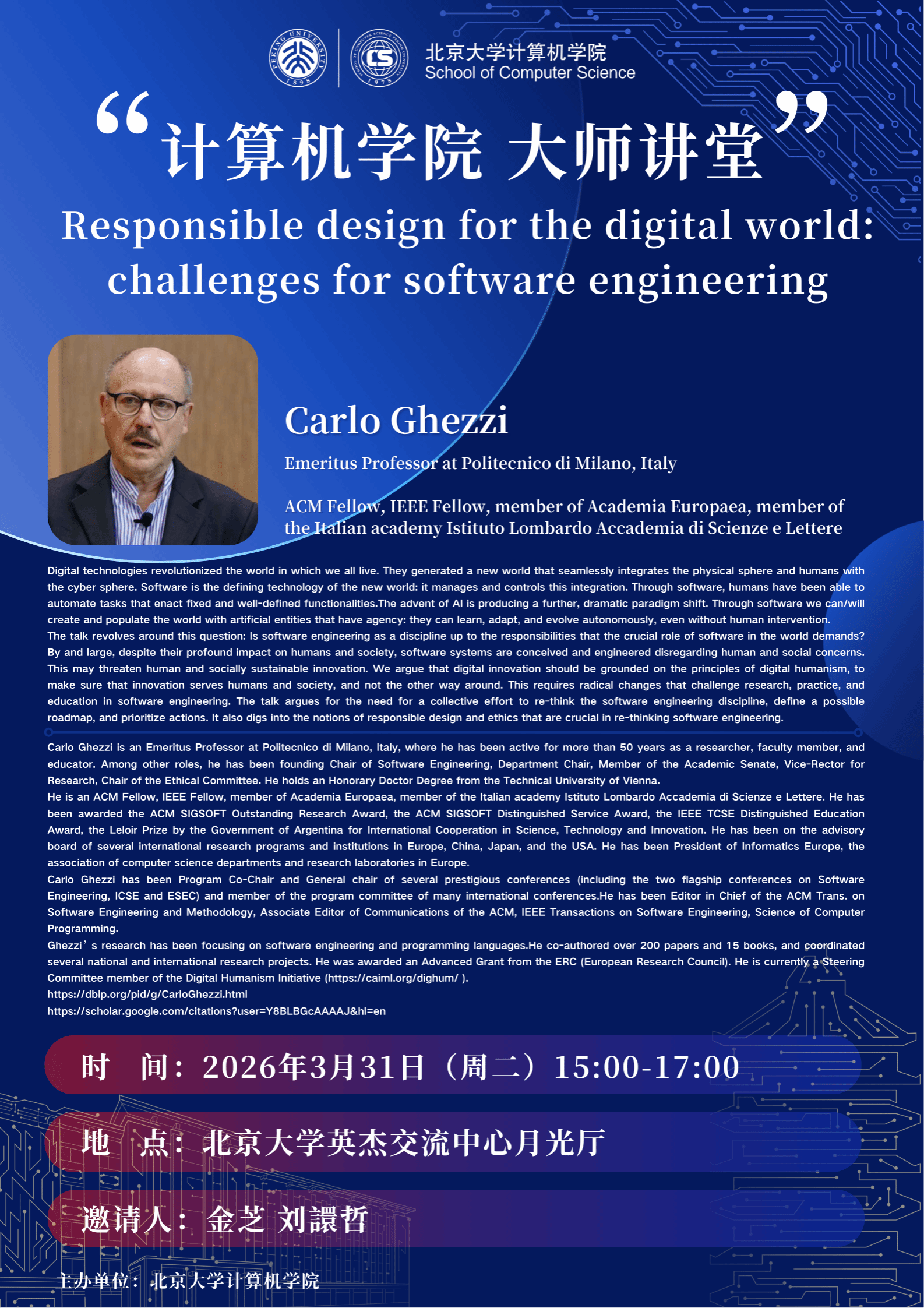计算机学院系列讲座大师讲堂第10期——Responsible design for the digital world: challenges for software engineering