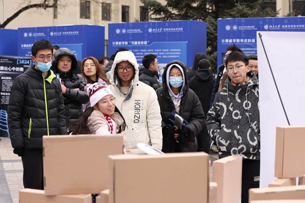 学科趣味互动区围绕计算机和信息学科特色和活动主题,推出了一系列丰富多彩的互动游戏。各个展位巧妙地结合了科普性和娱乐性,充分体现了学科趣味:愤怒的程序员需要用飞盘击倒写有bug的纸盒;有脚就行需要用脚踩出相应的代码;“I, soccer ball”则是将足球和计算机编程结合在一起。这些游戏不仅展现了同学们的编程技巧,也体现了对科技的热爱。计算机志愿网维”“计算机小队”“信科电脑小队展位现场为师生普及计算机软硬件知识、常见网络问题和安全问题的解决办法,更有答题环节让大家切身体会到计算机与网络安全的重要性。北京大学学生人工智能创新会、算法协会、极客实验室、Linux俱乐部等学生社团也准备了有趣的科技体验活动,让体验者感受到科技与日常生活结合的更多可能。