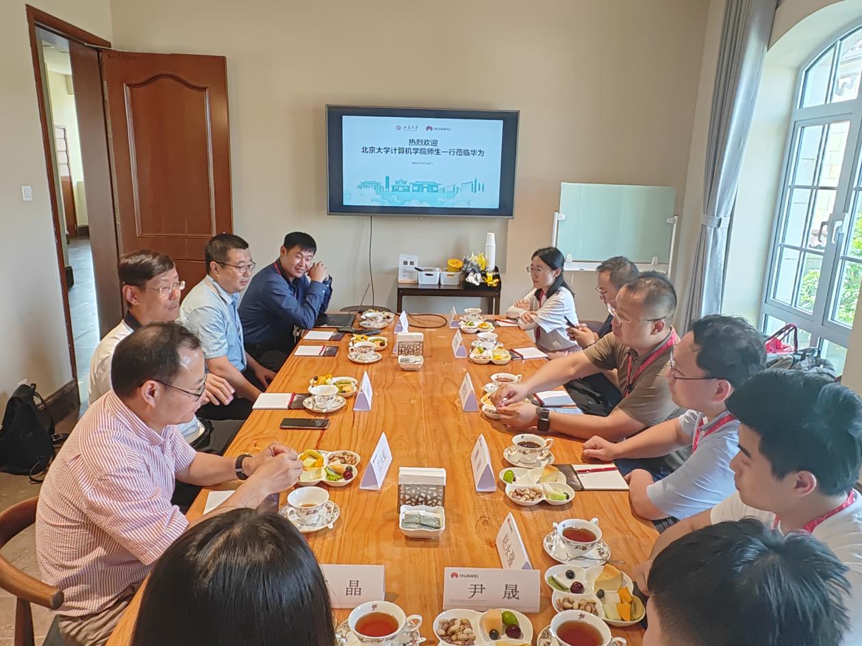 816日下午,实践团师生来到华为松山湖基地参访,并与华为北京研究所所长姜向中,北京研究所副所长、人力资源部部长江长虹,京津东北招聘调配部部长刘超,北京研究所人力资源部招聘经理王松等开展座谈交流。在松山湖基地,各具特色的经典建筑群临湖而立,浓厚的现代科技气息与旖旎的自然风光相互辉映,优美的科研工作环境让参访师生赞叹不已。实践团师生在参访期间近距离了解华为集团的研发与科技创新,在座谈交流中,师生深入了解了华为公司在5G、人工智能、云计算等领域的最新进展和发展方向,双方进行了深入地交流和讨论,分享了在科技自立自强背景下科学研究、产业创新等方面的进展和见解。