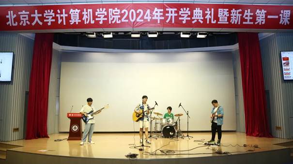 在暖场环节,北京大学白板擦乐队献给新生一曲《New Boy》,唱出新生们对新起点、新生活的新期待,希望新同学在新的阶段能够自由探索、追求理想,在学习生活中勇敢地迎接未来的挑战。
