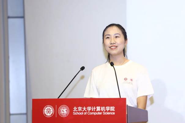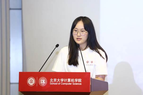 2024级硕士研究生许苑作为新生代表,紧密结合自己的研究方向,以机器学习的三大基石——数据、算力、算法为引,强调了信息、努力和志向的重要性。她分享到,丰富的信息是做出正确选择的关键,同学们应在北大的平台上积极交流合作,广泛涉猎以获取优质信息;科研成果的取得离不开持续的努力,面对科研中的挫折,从外在指标的追求转向内在核心竞争力的提升,才能建立可持续的正反馈循环;志向的选择决定了人生的意义与价值,同学们要将个人发展与时代进步和社会需要联系起来,提升研究的深度与广度,为社会创造更大价值。