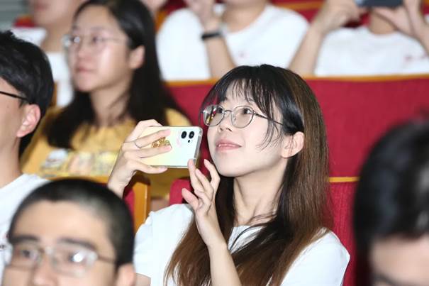 2021级博士研究生张雅坤作为在校生代表,与同学们分享了自己在新燕园三年来的成长与感悟。她从自己科研经历出发,勉励新生将科研与行业进步紧密结合,以服务国家战略为己任。她分享到,一流的科研环境和融洽的氛围是科研攻坚的有力保障,建议新生积极交流,与不同领域的同学互动,拓宽学术视野,解决科研难题。此外,作为新燕园的第一位学生党支书和学生党代表,她还介绍了党支部在党建+科研中的经验,鼓励新生积极参与丰富多彩的活动,不断提升自身能力,同时在科研探索中坚守初心,勇攀高峰,用实际行动为国家和社会作出更大的贡献。