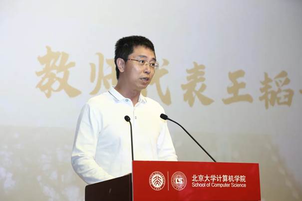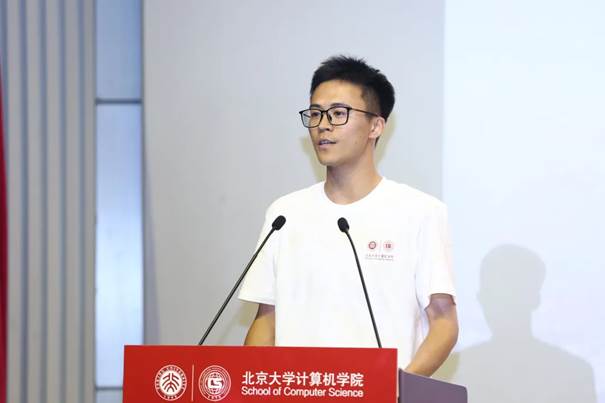 魏朋介绍了出席典礼的领导与老师。他表示计算机学院是一个温馨的大家庭,学院所有老师都将一直关心、陪伴、守护每一位同学的成长。希望同学们在未来的几年里,脚踏实地、练就过硬本领,以大格局、大胸怀修炼大作为,为科技自立自强贡献属于北大计算机人的青春力量。