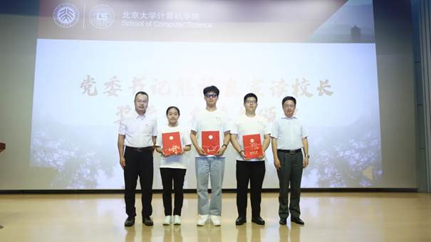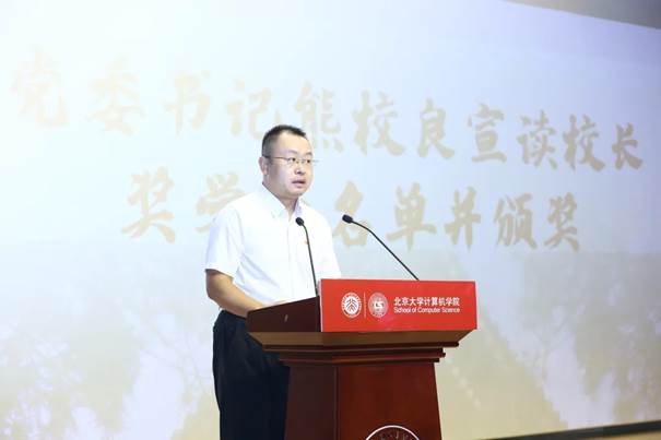 熊校良宣读2024-2025学年北京大学博士研究生校长奖学金的表彰决定并向获奖同学表示祝贺。他号召计算机学院同学们深入学习习近平新时代中国特色社会主义思想和党的二十届三中全会精神,特别是总书记关于加强计算机、人工智能、数字技术创新与应用、加快发展新质生产力系列重要讲话精神。他勉励同学们尊重科学、踏实科研,文明生活、健康成才,身为北大青年要把自身发展和国家科技事业结合起来,为中国式现代化和科技强国贡献青春力量。