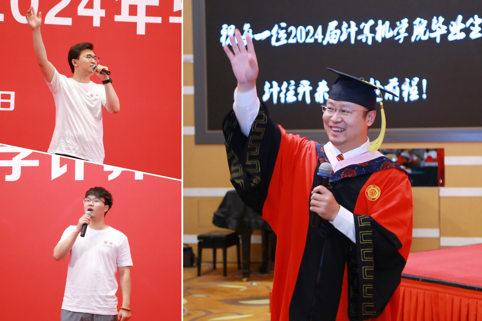熊校良宣读了计算机学院2024年优秀毕业生表彰决定。他回顾了计算机学院积极响应“新工科”建设、作为第一家教学科研单位入驻新燕园的奋斗历程,几年来,同学们与学院共同成长,见证了新燕园的发展,亲历了建党百年和北京冬奥。他勉励同学们要继续爱党爱国、勇于创新、乐于奉献,用0和1编译这个美好的世界,为推动科技强国、实现中国式现代化作出更大贡献。