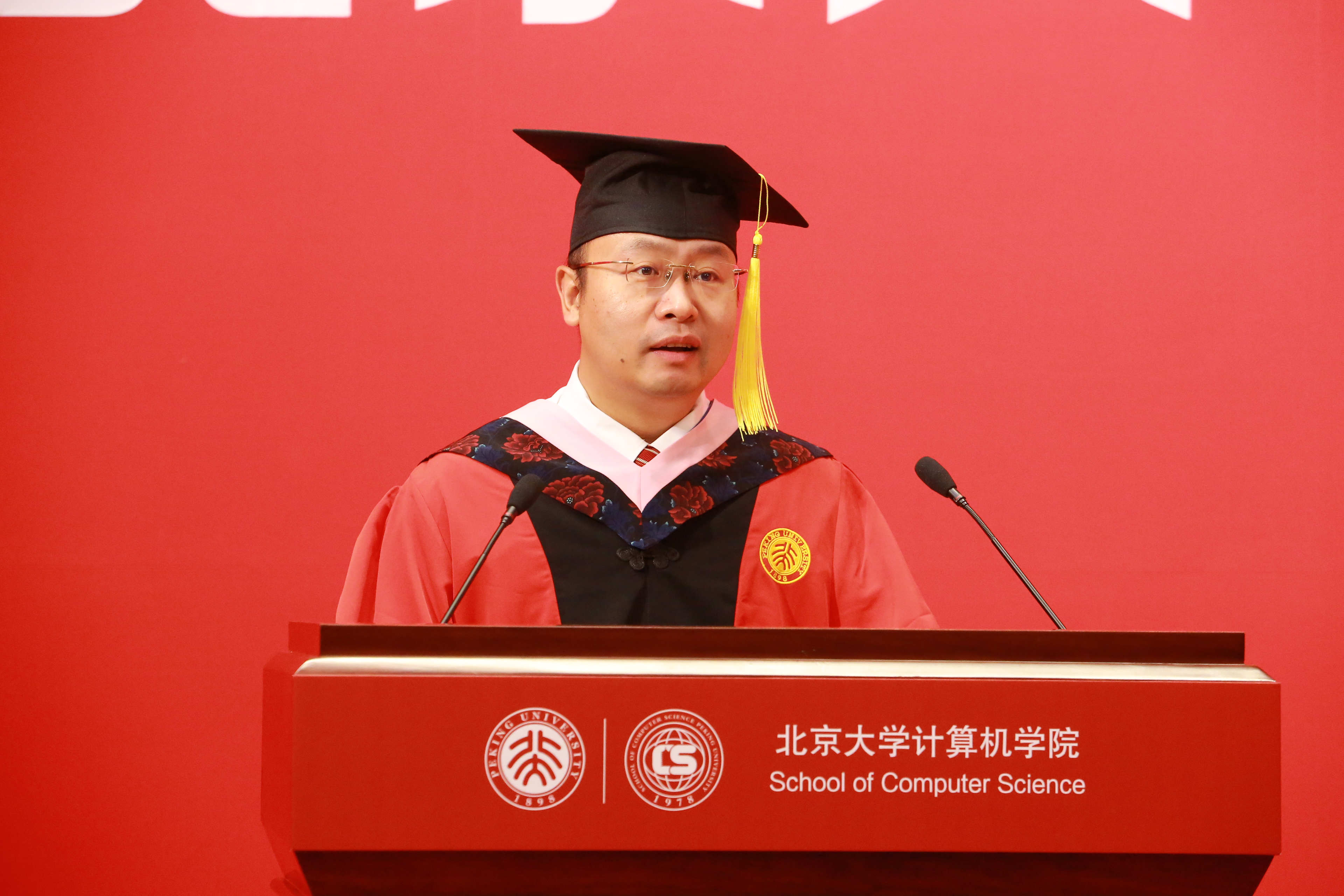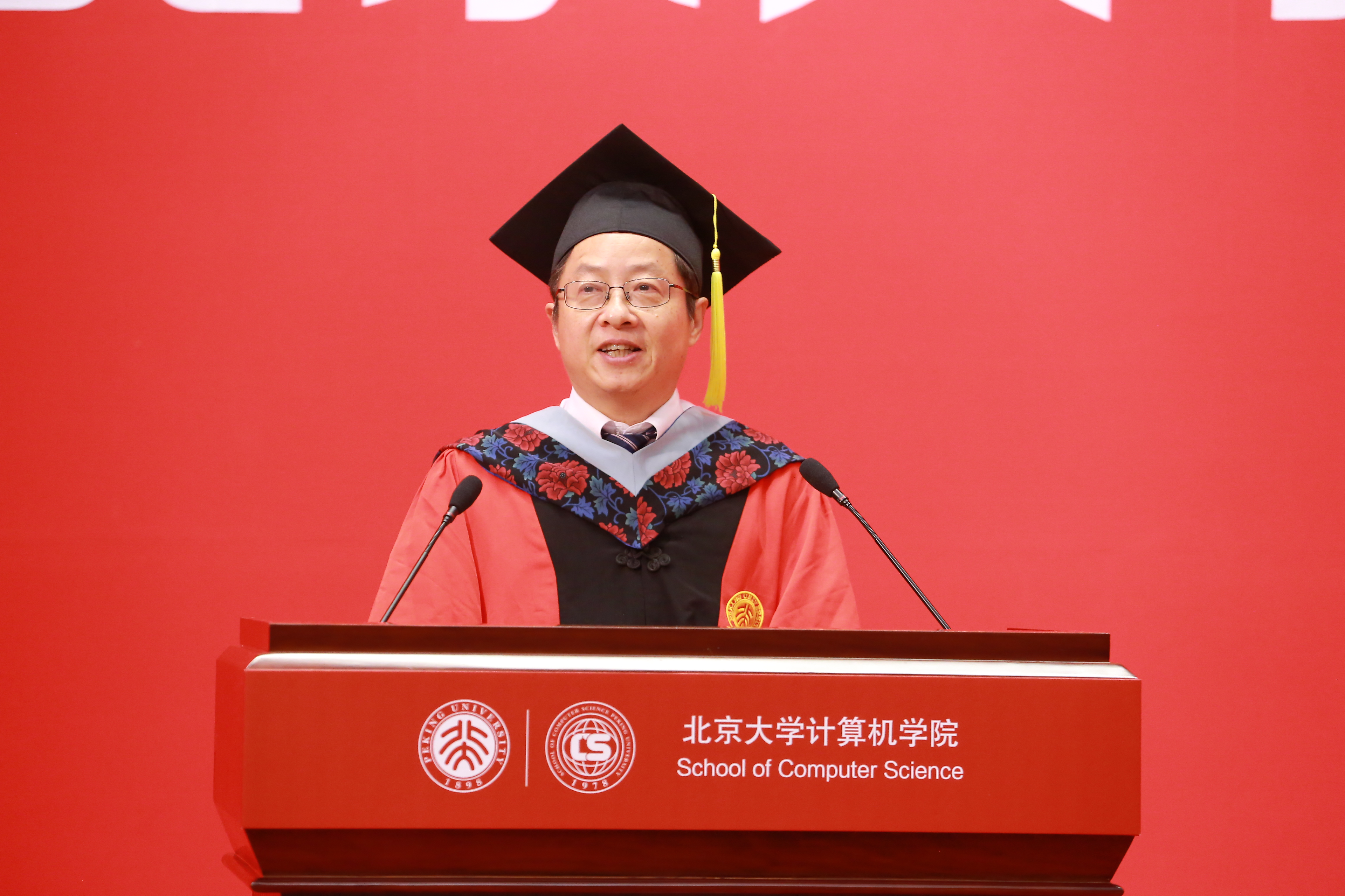 胡振江代表学院全体师生员工向毕业生致以最衷心的祝贺。他表示,一代代北大计算机人接续奋斗,在硬件、软件和芯片等领域取得了卓越成绩,为解决信息技术领域卡脖子问题做出了重要贡献。他希望毕业生们能够传承北大计算机人的家国情怀、肩负起时代和历史赋予的重任,成为敢于改变世界的北大计算机人。他与毕业生分享了四点希望:一是要永远好奇、不断求索。希望同学们保持对知识的热爱和探索的精神,通过不断创新为生产力发展提质增速,为推动国家科技进步和社会发展贡献力量。二是要不惧失败、不忘初心。希望同学们坚定为国家富强和人民幸福而奋斗的初心,无论面对多大的困难和挑战,都要学会以乐观豁达的态度积极寻找解决问题的办法。三是要善于合作、精诚团结。希望同学们能够学会合作共赢,以开放的心态齐心协力、共同奋斗,推动技术和社会的共同进步。四是要正直善良、诚实守信。希望同学们无论在多么复杂和竞争激烈的环境中,都要坚守自己的道德底线、保持内心的正直和善良,用自己的智慧和力量为祖国和人民服务。最后,他为毕业生送上真挚的祝福,愿同学们在未来的日子里,乘风破浪,勇往直前,书写属于自己的辉煌篇章。