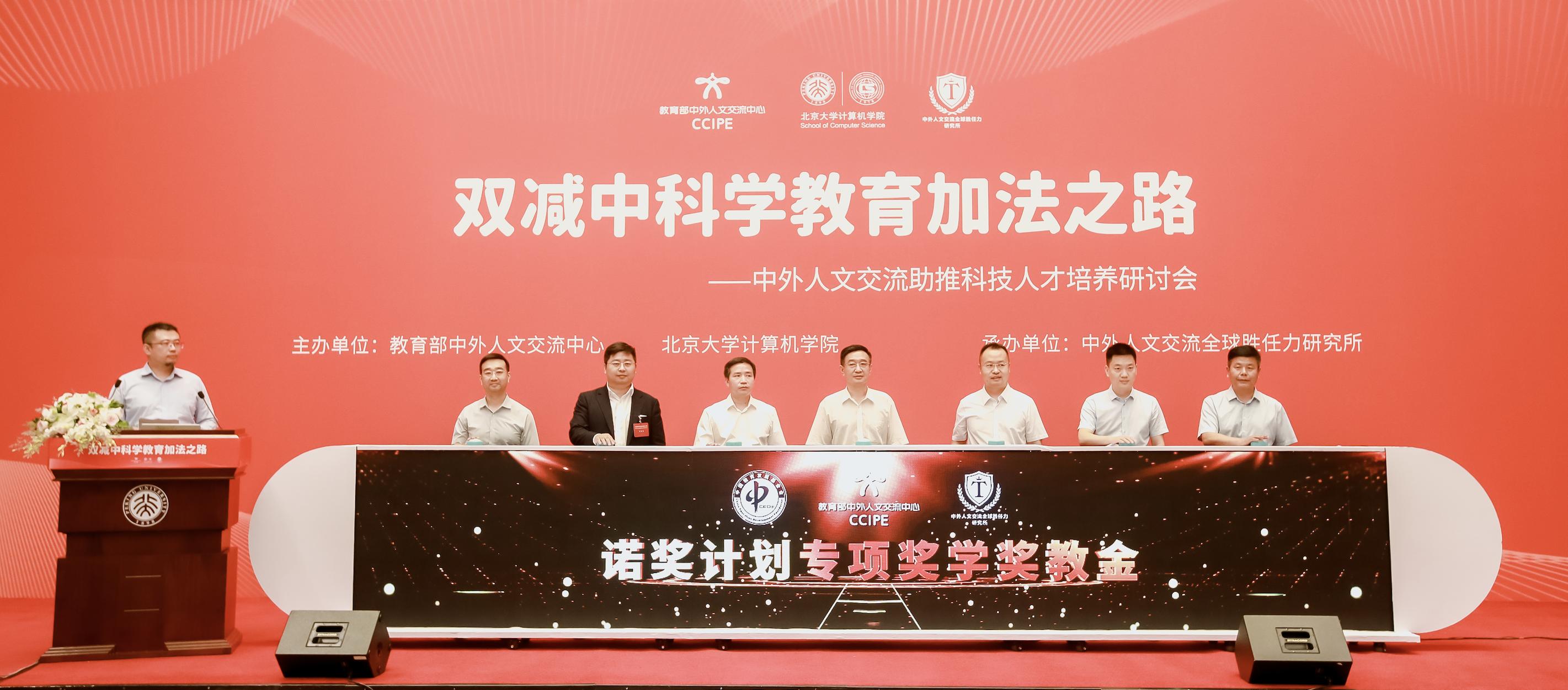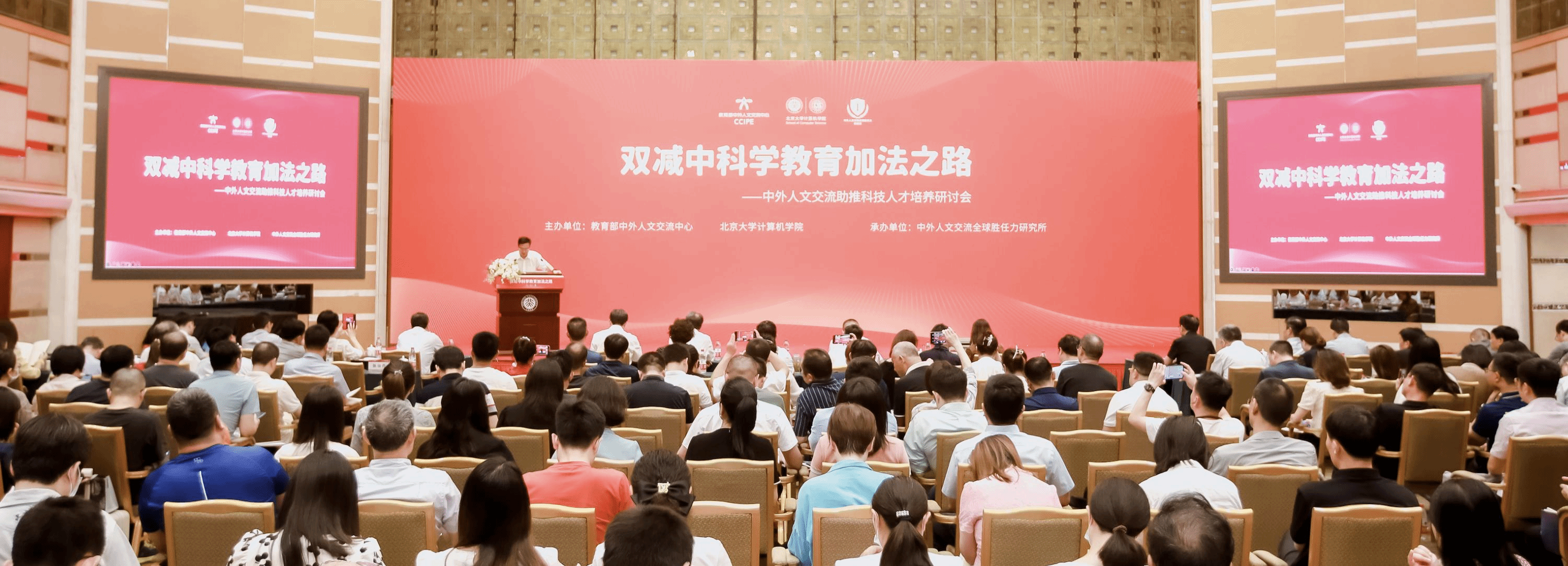 618日,在北京大学深入开展学习贯彻习近平新时代中国特色社会主义思想主题教育之际,北京大学计算机学院为深入学习贯彻落实习近平总书记的重要讲话精神,与教育部中外人文交流中心在英杰交流中心阳光大厅联合举办“双减中科学教育加法之路——中外人文交流助推科技人才培养”研讨会,以系统部署在教育“双减”中做好科学教育加法,支撑服务一体化推进教育、科技、人才高质量发展。教育部中外人文交流中心主任杜柯伟、副主任曹叠峰,教育部科技发展中心前主任、中国教育发展战略学会副会长李志民,中国教育发展基金会副秘书长成梁,北京大学计算机学院党委书记熊校良,北京外国语大学继续教育学院院长高晓东,中外人文交流全球胜任力研究所执行主任刘恋及副主任王凯昊共同出席研讨会。来自青少年科技教育、中外人文交流领域的专家学者和上百所中小学校长济济一堂,共同探讨“双减”背景下构建中小学科学教育体系,打造创新型、国际化科学教育特色学校的路径与方法。
