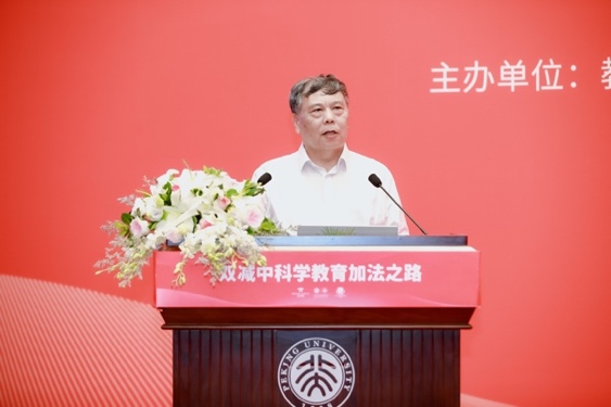 教育部中外人文交流中心主任杜柯伟在致辞中指出,作为从事中外人文交流工作的专门机构,近年来教育部中外人文交流中心围绕人文交流助力人才培养的理念,精心设计并组织实施了诸多项目,比如面向中小学的诺奖获得者科学实验室青少年科学素养国际培养计划,面向大学生的高层次国际化人才培养创新实践项目等。今天中心与北京大学计算机学院共同举办研讨会,就是为中小学校以“双减中科学教育加法之路”为主题搭建一个人文交流平台,围绕全球科技发展的机遇和挑战、当下中国科技教育政策及发展方向、高等教育科技人才培养的前沿理念及实践、中小学校科技人才培养体系建设实践等主题开展研讨,探索在“双减”中做好科学教育加法的思路和方法,更好地发挥人文交流的育人功能,推动更多的中小学建设科技人才培养体系,培养具有国际视野的创新型科技人才。