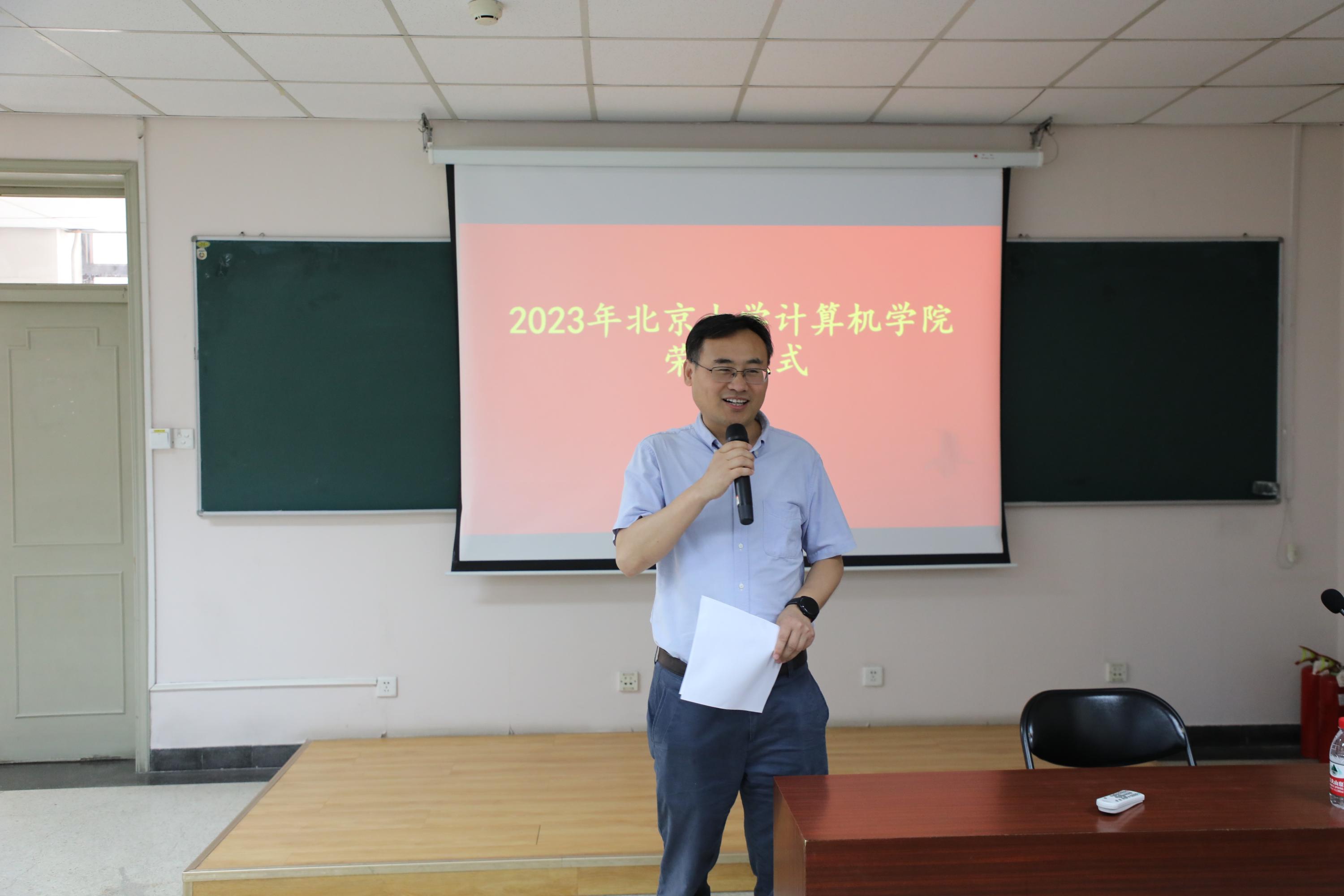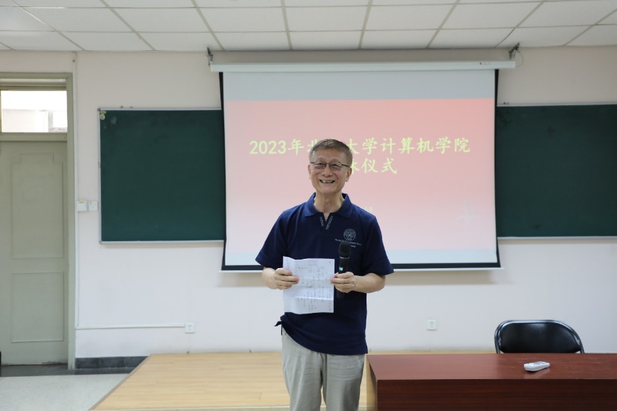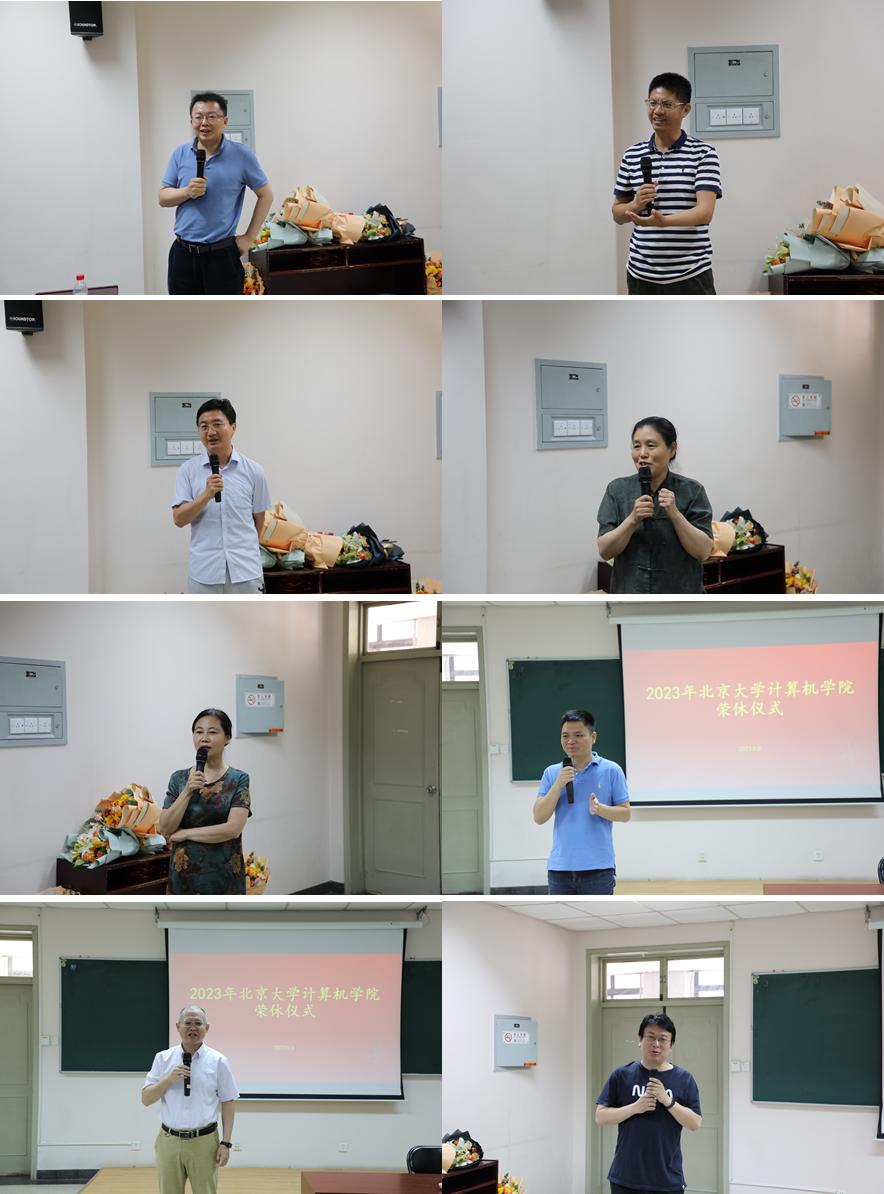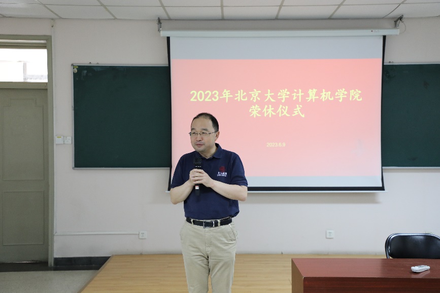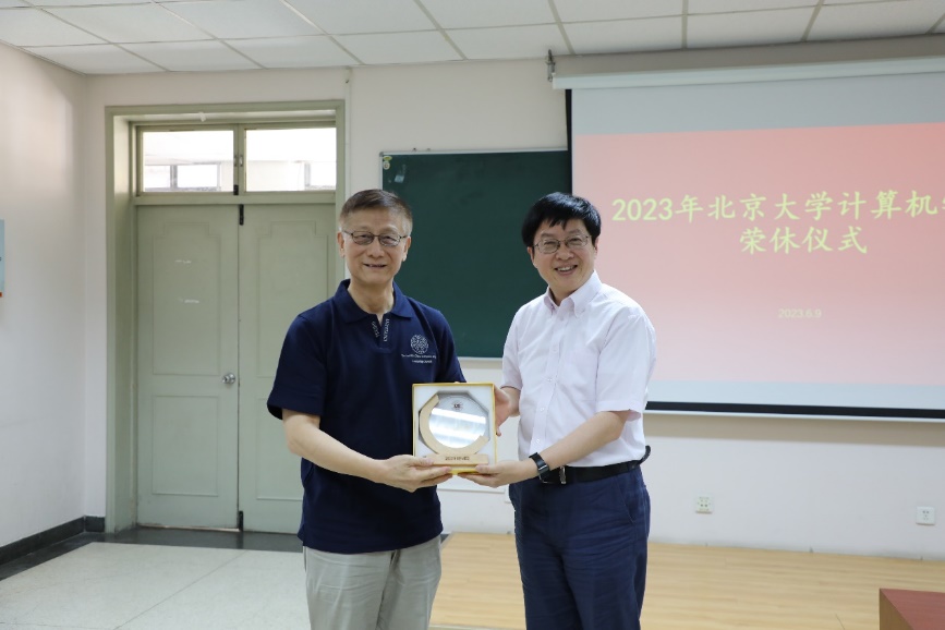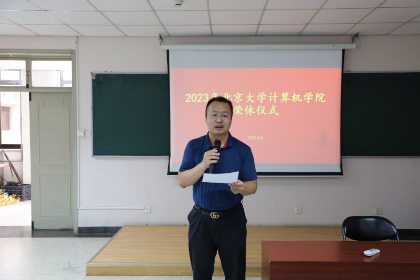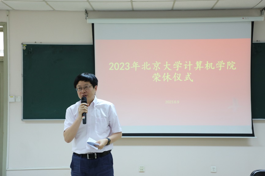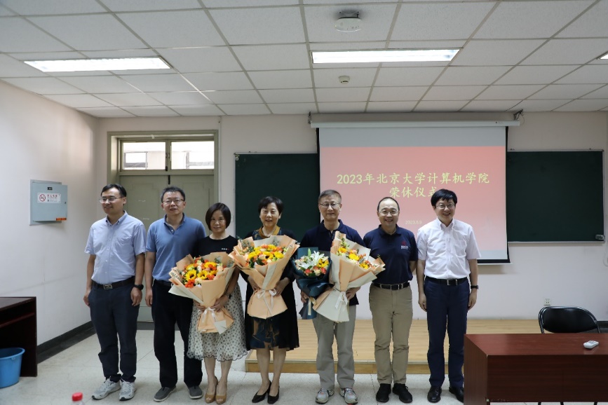 2023年6月9日,北京大学计算机学院在理科一号楼1126举办2023年荣休仪式。北京大学教务长办公室主任、教师教学发展中心主任孙华,计算机学院院长胡振江、党委书记熊校良、副院长崔斌、党委副书记马思伟及学院教职工、院友、同学代表共同见证了这一时刻、共忆过往,气氛温馨。荣休仪式由党委副书记马思伟主持。