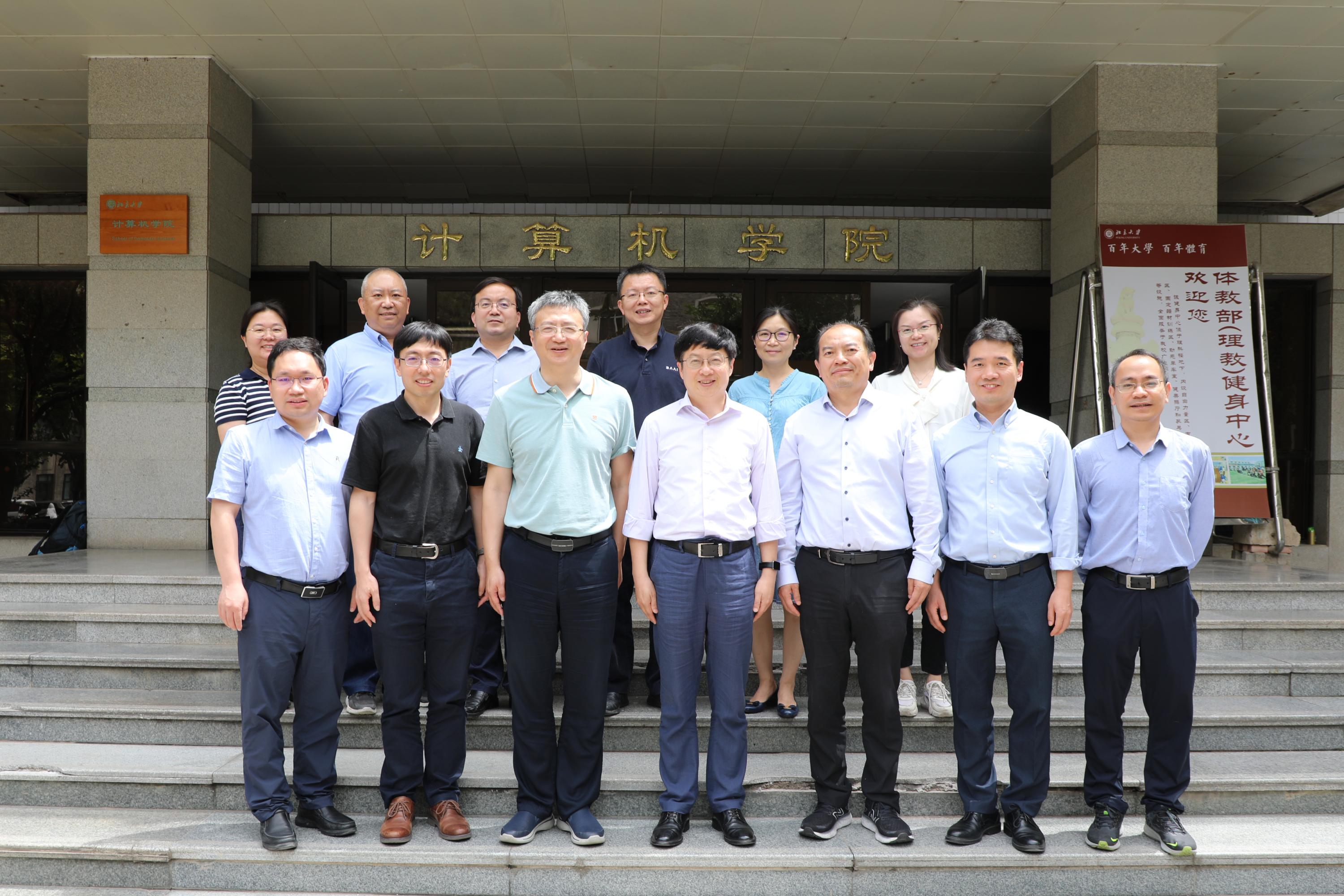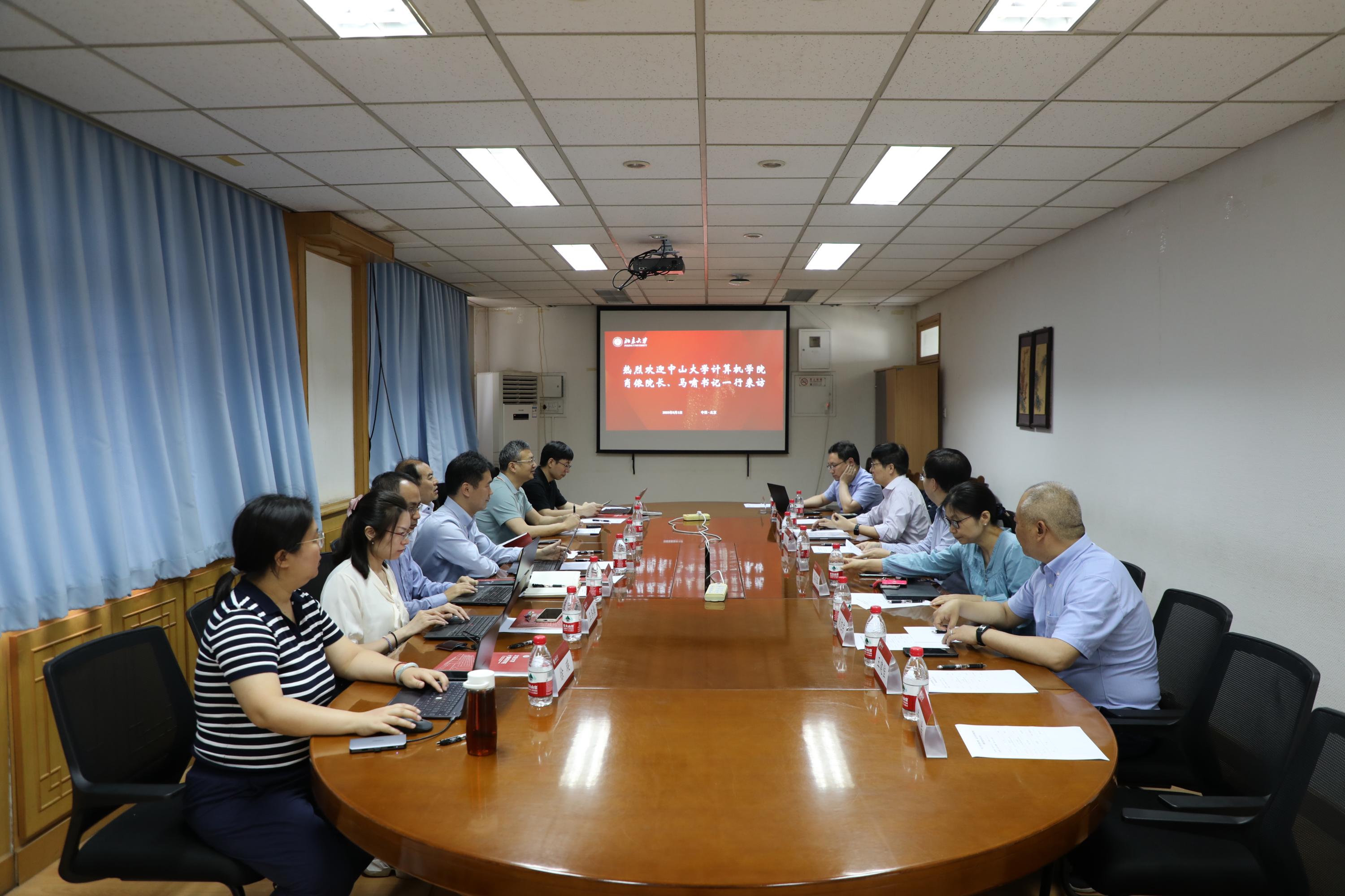 6月1日,中山大学计算机学院院长肖侬,党委书记马啸,副院长吴迪、吴维刚,院长助理陈旭,党政办公室主任王冬梅等党政领导来我院调研交流。北京大学计算机学院院长胡振江,副院长崔斌、郭耀、周明辉,党委副书记魏朋,院长助理、办公室主任刘旭东等参加交流座谈。会议由胡振江院长主持。
