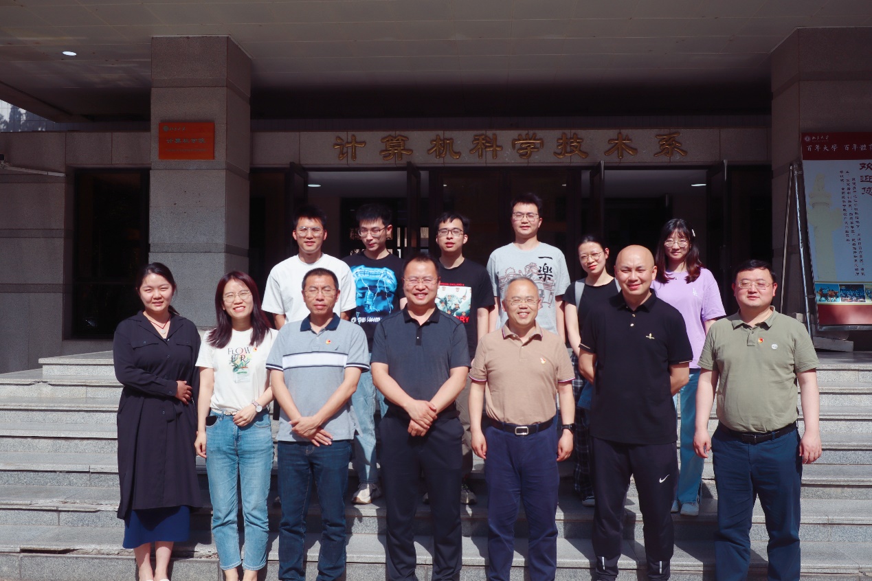 5月18日下午,北京大学计算机学院与西安电子科技大学计算机科学与技术学院共同开展主题教育联学交流会。西电计科院党委书记李青山,副院长万波、李瑞,党建与学生工作办公室主任同榛一行来访北大计算机学院。计算机学院党委书记熊校良,副院长郭耀,软件所副所长、科研部副部长刘譞哲,团委书记于丹,以及6名本科毕业于西电计科院,目前就读于北大计算机学院、软件与微电子学院的研究生代表参与本次交流会。