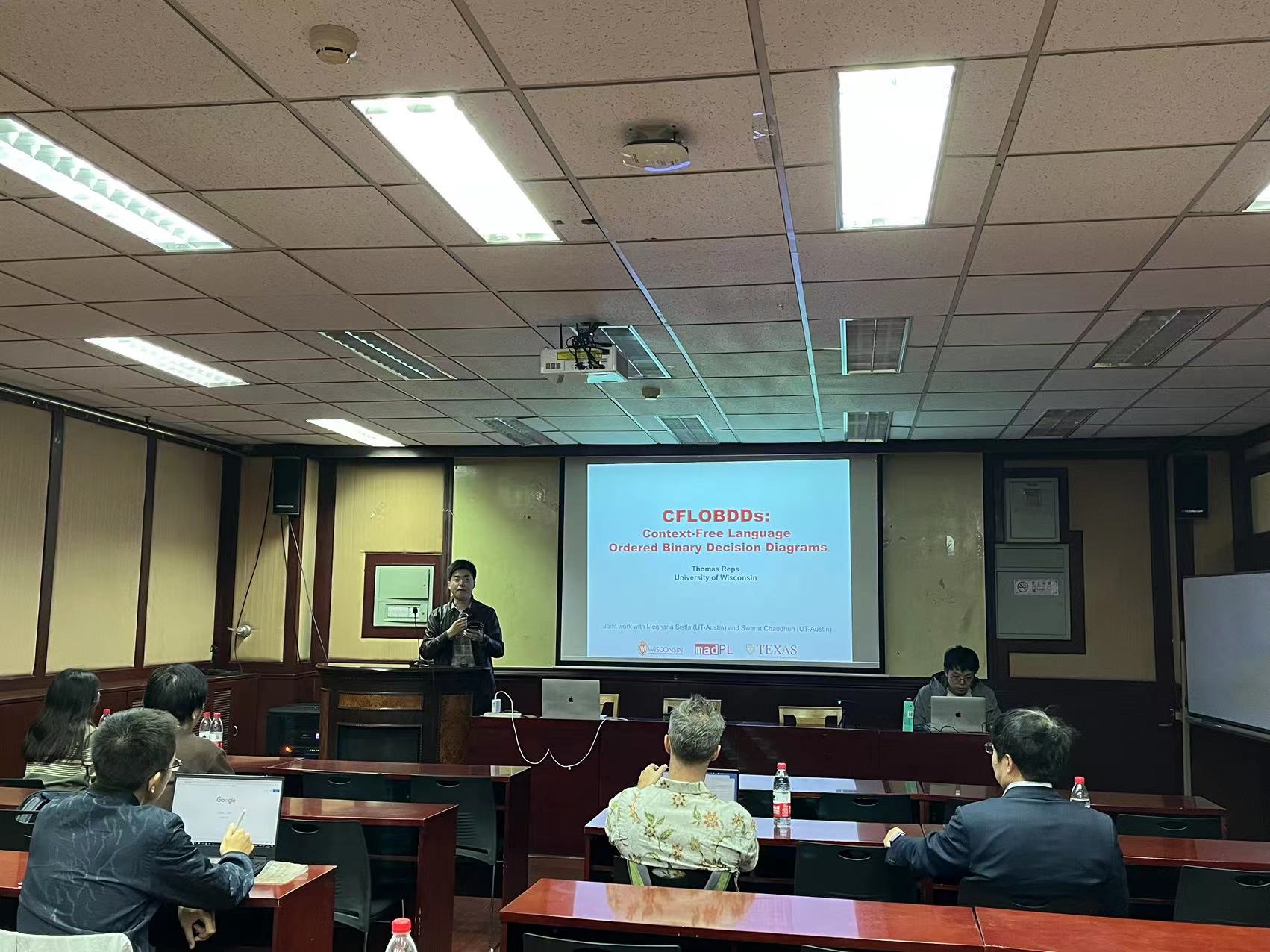 2023年4月28日上午,计算机学院 “大师讲堂”邀请了ACM Fellow、欧洲科学院外籍院士、美国威斯康星大学麦迪逊分校计算机系讲席教授Thomas W. Reps进行题为《CFLOBDD:Context-Free- Language Ordered Binary Decision Diagrams》的学术报告。本期“大师讲堂”以线下线上结合形式进行,同时在燕园校区和昌平校区开设了两个分会场,并通过bilibili平台进行全程直播,线上线下合计超过200名观众。本次讲座由北京大学计算机学院助理教授张昕老师主持。