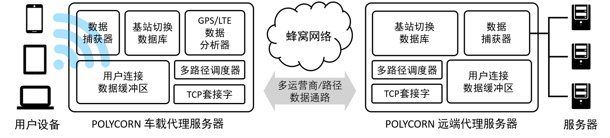 在高铁环境下,无线信道状态变化迅速、接入速率与延迟难以预测、网络中断时有发生,网络连接性能缺乏保障。针对该问题,北京大学许辰人课题组利用多路径传输技术优化网络性能,设计了一种适用于复杂网络环境的多路径传输算法框架,基于这一框架设计了针对高速移动场景的传输优化策略,并实现了对应的多路径传输系统。在京沪高铁LTE网关(即高铁Wi-Fi控制器)上的实地测试表明,该系统能够提升至多242%的传输速率,对于实时通讯应用减少45%的传输时间,并大幅提升用户间体验的公平性。