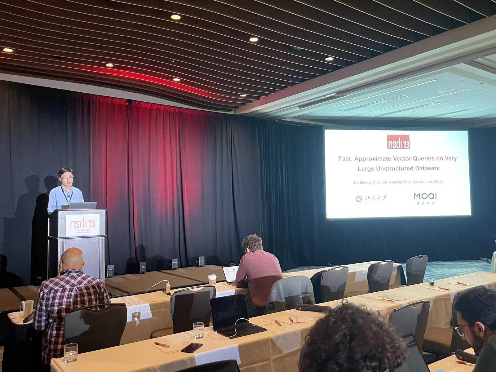该工作以《Fast, Approximate Vector Queries on Very Large Unstructured Datasets》为题,发表于今年的 NSDI 中的 Data 会场,由文章第一作者北京大学信息科学技术学院的19级本科生章梓立进行宣讲,合作作者包括金超、汤林鹏(墨奇科技)、刘譞哲副教授(通讯作者)、金鑫副教授(通讯作者)。