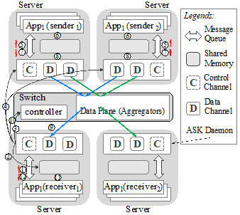 论文面向数据分析领域中常见的、但是开销较大的键值流聚合操作,提出了一种基于在网计算的通用键值流聚合服务系统ASK。该系统将键值流聚合操作卸载到可编程交换机,能够以更高的效率完成键值流聚合,降低网络流量并压缩传输时间。系统设计克服了在流水线结构上向量化键值元组聚合、在不可靠网络中保证计算传输正确性、以及在键不可预知情况下优先处理热键三个挑战。论文团队将ASK与广泛使用的大数据系统Spark集成,并在词频统计等常用的应用中测试,能够将系统效率提升35倍。