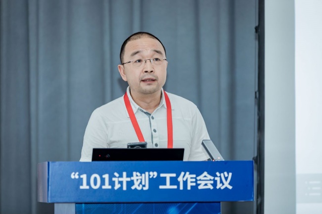 课程建设组负责人、北京大学计算机学院副院长郭耀教授总结了2022年上半年课程建设进展,并介绍了下一阶段课程建设组的工作计划。郭耀教授强调“101计划”的总体目标是建好核心课程体系,促进教学效果提升。目前,课程建设组已经针对国内外高校课程建设进行了调研,规划出撰写教材和搭建实践平台的流程。下一步,课程建设组将抓紧推进知识点教案和教材撰写,搭建课程体系展示平台,推动虚拟教研室开展交流活动,不断提高“101计划”课程建设质量。