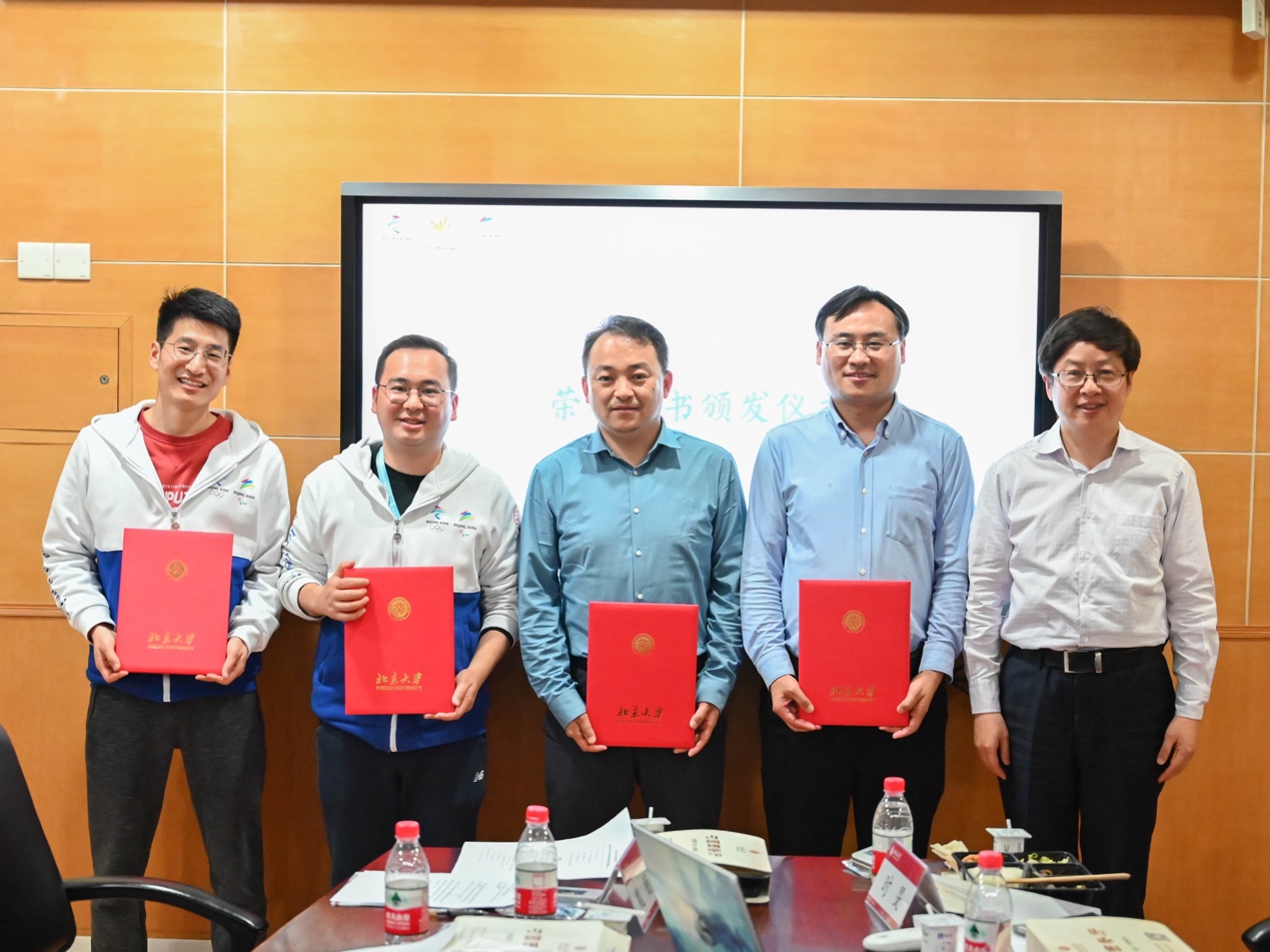 学院党委书记熊校良宣读表彰决定。为表彰先进,激励参与冬奥师生继续奋发向前,他号召计算机学院全体师生学习胸怀大局、自信开放、迎难而上、追求卓越、共创未来的北京冬奥精神。他指出,学院研究决定授予高文、马思伟、王苫社、杨森、叶茂源五名教师,时旻、段浩诚、陈天宇、陈浩煌、苏睿、赵毓瑾六名同学北京大学计算机学院北京2022年冬奥会冬残奥会特殊贡献奖,授予王玉、陈浩煌两名同学北京大学计算机学院“相约北京”系列冬季体育测试活动特殊贡献奖,授予王玉、陈天宇、赵毓瑾、段浩诚四名同学北京大学计算机学院“相约北京·昆泰”2021年世界轮椅冰壶锦标赛特殊贡献奖。