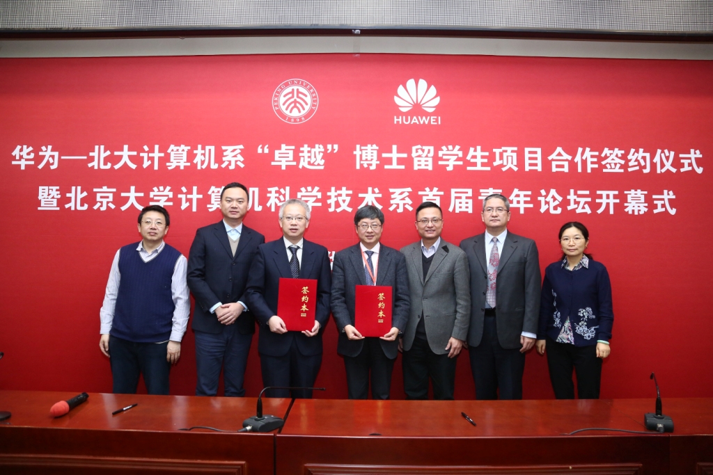 2019年12月21日,北京大学计算机科学技术系“华为-北大计算机系‘卓越’博士留学生项目合作签约仪式暨计算机科学技术系首届青年论坛”开幕式在北京大学理科2号楼2129报告厅举行。