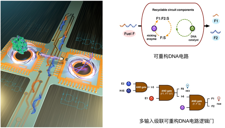 随着信息处理量爆炸性猛增,传统信息处理技术面临着前所未有的巨大挑战。在众多前瞻计算技术中,生物计算和分子智能系统以其高分子并行性、存储能力以及生物兼容性吸引了人们的目光。其中,DNA电路(DNA circuit)是该领域重要的分子信息调控和处理技术。其应用涉及多个领域,包括分子计算与存储、基因编辑和纳米机器等。然而,与硅基电路只消耗输入电信号不同,传统的DNA电路其自身会作为反应物消耗,从而降低了系统的稳定性,并增加了复杂性和DNA编码难度。因此,如何设计构建可重构DNA电路,以实现高稳定和可迭代的生物计算和基因编辑系统已成为领域内亟待解决的重要问题。