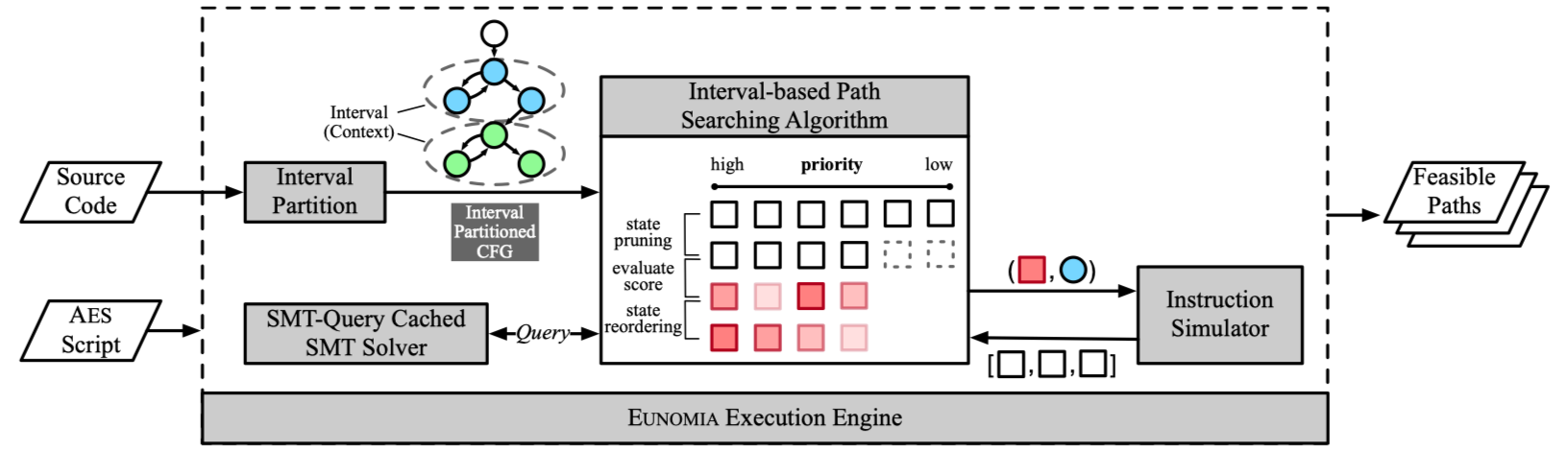 静态符号执行技术在程序分析领域中至关重要,相关的分析和优化方法一直在学术界和工业界得到持续关注。WebAssembly 语言是在泛在计算领域广泛使用的一种新的中间语言范型,可以为 C/C++、Go 等语言提供统一的泛在应用执行环境。研究团队针对 WebAssembly 语言的特点设计了一套脚本语言,该语言允许用户将先验知识形式化的引入到被测试程序中。通过作者提出并实现的“基于区间的路径搜索算法”以及针对 WebAssembly 语言的符号执行引擎,相较于目前的前沿工作,该工作可以将针对 WebAssembly 语言的静态符号执行分析效率提升一到两个数量级,成功在实际应用和系统中发现了多个 0-Day 漏洞,证明了该工作的有效性,并为后续工作指出了一个新的研究方向。
