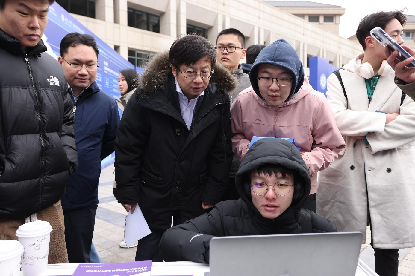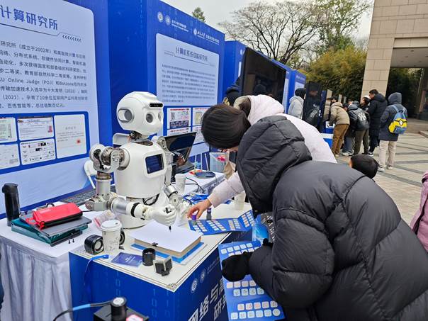 各研究所和中心的志愿者同学们在展位耐心地向围观的师生介绍前沿科技成果,通过生动的讲解和深入的交流,他们使复杂的科学概念变得易于理解和体验。大语言模型、VR和AR技术在这里不再是生涩难懂的科学术语,参观者们不仅获得了知识的启迪,还在各摊位上体验了丰富多样的模型展示、趣味游戏和有奖问答,使得学习既充实又富有乐趣。