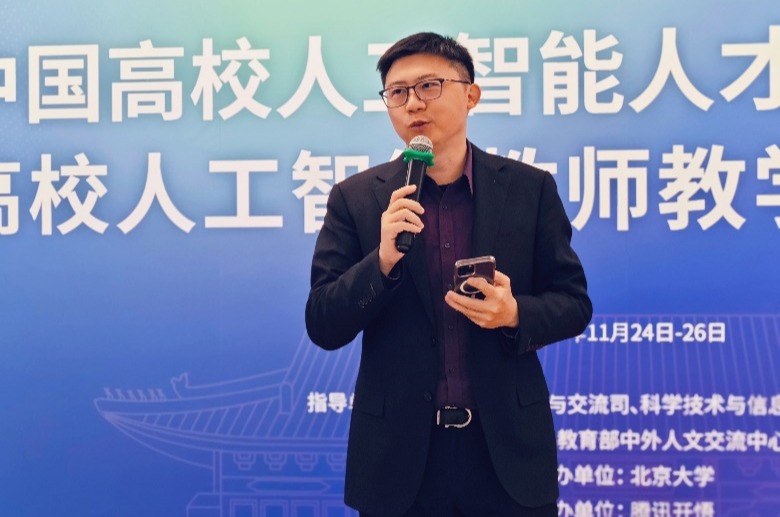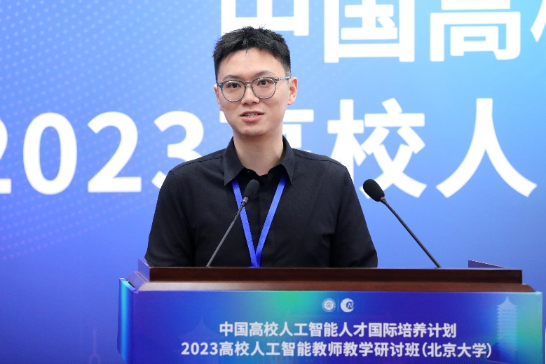澳门大学助理教授王也作为学员代表发言。他感谢教育部和北京大学提供宝贵的学习机会,不仅配备了优质的人工智能教学资源,也使与会教师有机会与全国各地的同行深入交流,期待将研讨班收获的知识与经验带回特区,为澳门地区的人工智能教育贡献自己的力量。