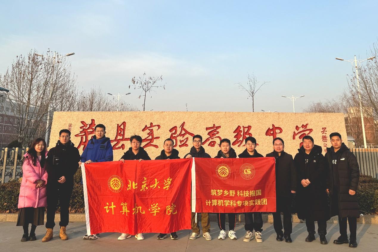 习近平总书记强调:“青年一代有理想、有担当,国家就有前途,民族就有希望,实现我们的发展目标就有源源不断的强大力量。”为积极响应习近平总书记的号召,激励广大学子追逐梦想,鼓舞学生树立崇高理想、钻研尖端科技,北京大学计算机学院于2024126日至28日组织师生赴安徽宿州等地开展“筑梦乡野,科技报国”寒假主题实践系列活动。本次实践由计算机学院党委副书记魏朋、行政党支部书记孙玥玲、专职辅导员李佳斌带队,实践内容包含学科报告分享和师生党建活动两个部分,行程地点主要包括萧县实验高级中学以及淮海战役总前委、皇藏峪国家森林公园和徐州汉王墓文化遗址等红色教育基地及文化遗址。