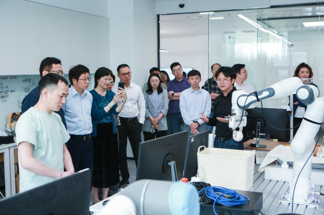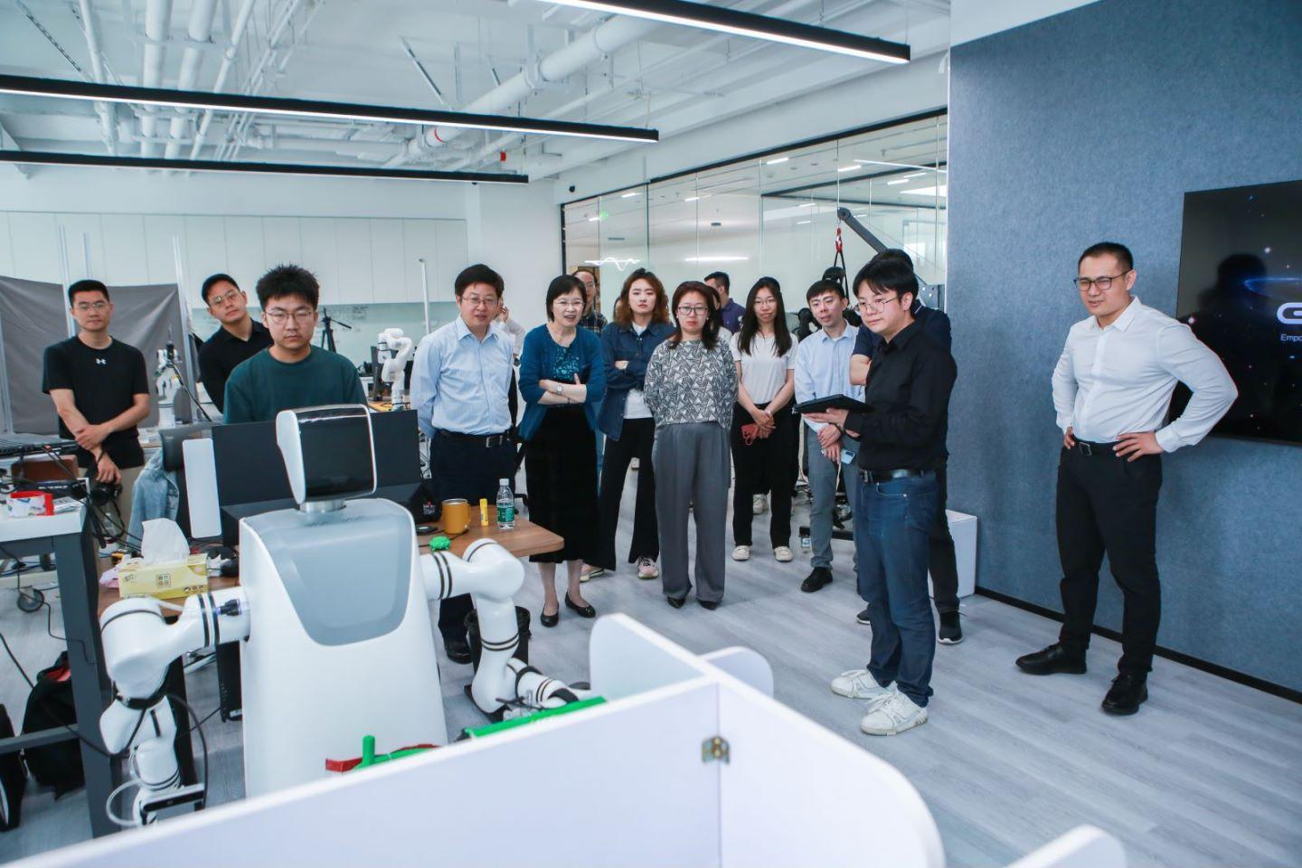 在正式揭牌及合影留念后,联合实验室主任王鹤邀请与会嘉宾一同参观了银河通用机器人位于中关村的研究实验室。