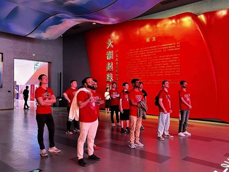 下午,留学生们参观了深圳改革开放展览馆。通过照片、实物、视频和高科技互动体验,展览馆生动再现了广东改革开放40年的壮阔历程和辉煌成就。从早期的经济特区设立,到如今的科技创新高地,展览通过详实的资料和生动的讲解,揭示了这座城市在改革开放中的重要角色和贡献。留学生们不仅感受到历史的厚重,还通过互动切身体验了深圳在科技、经济、文化等多领域的飞速发展。这次参观为他们的国情教育提供了宝贵的内容,加深了他们对中国改革开放政策及其成果的理解,也激发了他们对中国未来发展的浓厚兴趣。