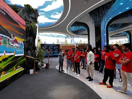第二天上午,留学生们参访了华为技术有限公司位于坂田的总部。华为公司以其强大的研发投入和“数字化、智能化、低碳化”的发展方向著称。在智慧园区IOC和数字化转型展厅,留学生们参观了智能化园区、全无线智能物联工厂、低碳园区等前沿展示。华为技术专家的详细讲解加深了留学生们对华为的了解,展示了其作为全球领先的信息与通信技术解决方案供应商的实力。