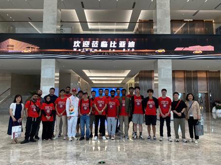 实践活动的最后一站是比亚迪公司深圳总部。留学生们走进著名的六角大楼,首先映入眼帘的是比亚迪几款最新上市的车型,从轿车到SUV,从乘用车到货运车,车型种类丰富,展现了比亚迪在汽车领域的广泛布局。随着讲解员的脚步留学生们深入展厅,了解比亚迪从1995年到2023年的发展历程,见证了企业从生产充电电池到成为汽车品牌领导者的崛起之路。展厅内展示了各种车辆结构系统,包括发动机底盘、纯电动公交车,以及采用无人驾驶技术的公共轨道交通云轨系统等模型。特别令人印象深刻的是,比亚迪还涉足手机相关部件的代加工业务,市面上主流手机的大部分结构件都出自比亚迪电子,彰显了其在电子制造领域的实力。