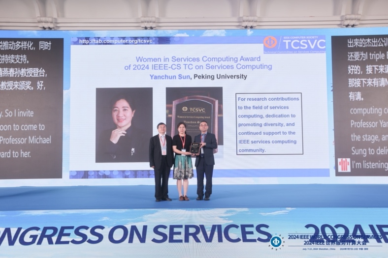 由国际电气与电子工程师协会服务计算专业技术委员会IEEE TCSVC举办的2024 世界服务计算大会(2024 IEEE World Congress on SERVICES)于2024年7月7日在深圳开幕,会议期间IEEE TCSVC奖励委员会宣布北京大学计算机学院孙艳春副教授获得IEEE TCSVC服务计算杰出女性奖(Women in Services Computing Award),以表彰孙艳春副教授在服务计算领域的研究贡献、对促进多样性的贡献以及对 IEEE 服务计算社区的持续支持。IEEE TCSVC服务计算杰出女性奖是表彰孙艳春副教授对服务计算领域的先锋领导贡献。