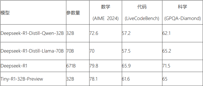 2025年2月24日——由北京大学计算机学院与360公司联合研发的32B模型Tiny-R1-32B-Preview正式亮相,仅以5%参数,逼近Deepseek-R1-671B的性能。项目前期得到了北大临港科创中心在算力资源方面的支持。