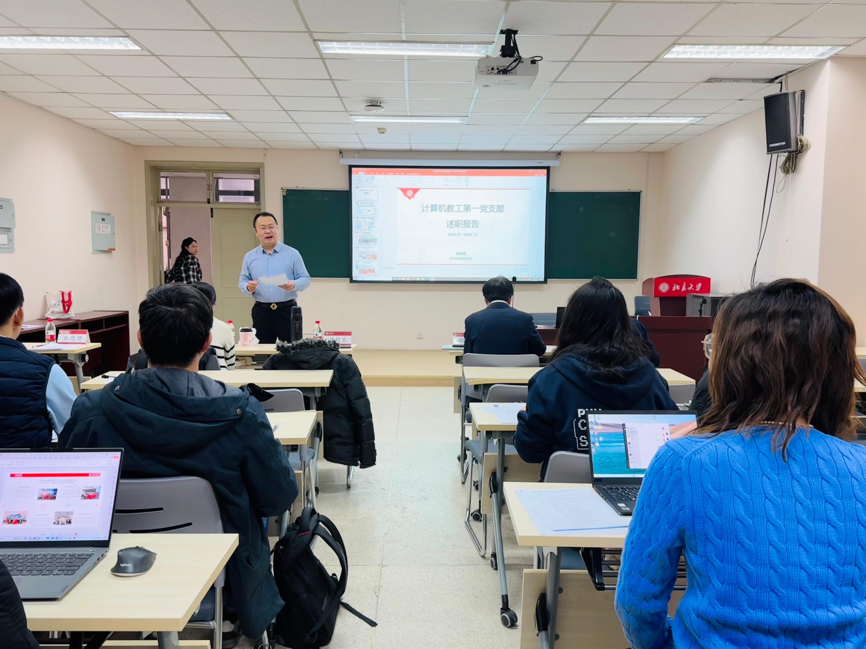 为认真贯彻落实新时代党的组织路线,推动全面从严治党走深走实,强化基层党组织建设,2025年2月25日,计算机学院在理科一号楼1126会议室召开2024年度党支部书记述职评议会。计算机学院院长胡振江,党委书记熊校良,党委副书记魏朋、马思伟出席会议,学校部分职能部门老师列席会议,全体党支部书记参加会议,会议由熊校良主持。