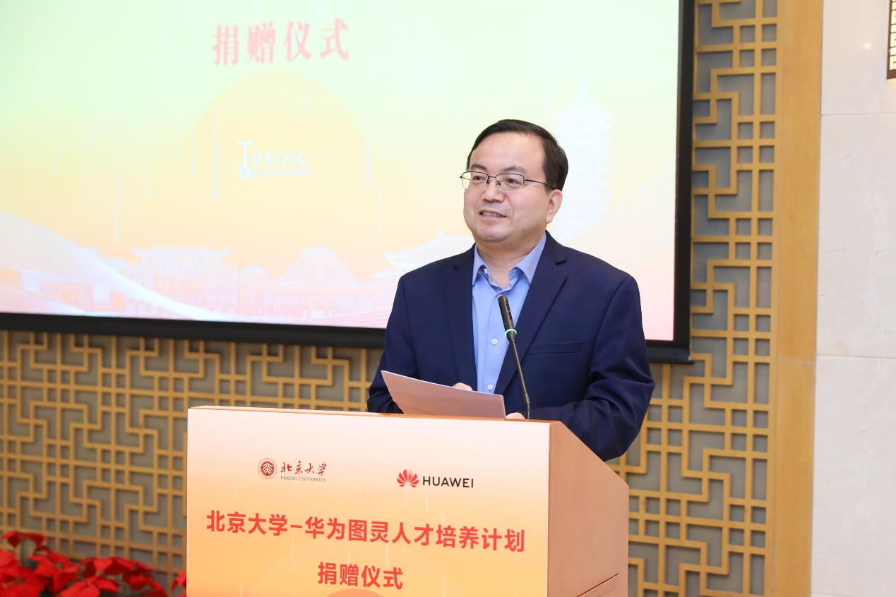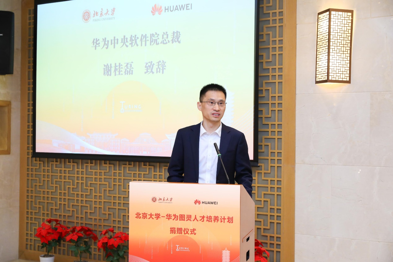 华为中央软件院总裁谢桂磊、软件Fellow陈海波,北京研究所所长姜向中,中央软件院欧拉部部长万汉阳、高斯部部长李修昶,北京研究所人力资源部部长周菲,中央软件院人力资源部部长赵章淳、编程语言实验室主任冯新宇、OS内核实验室主任贾宁与北京大学副校长、教务长、教育基金会副理事长王博,教务部部长傅绥燕,教育基金会秘书长、校办产业党工委书记兼管委会办公室主任李宇宁,计算机学院院长胡振江,信息科学技术学院院长侯士敏,研究生院培养办公室副主任瞿毅臻,图灵班师生代表等共同出席。北京大学计算机学院副院长郭耀主持仪式。