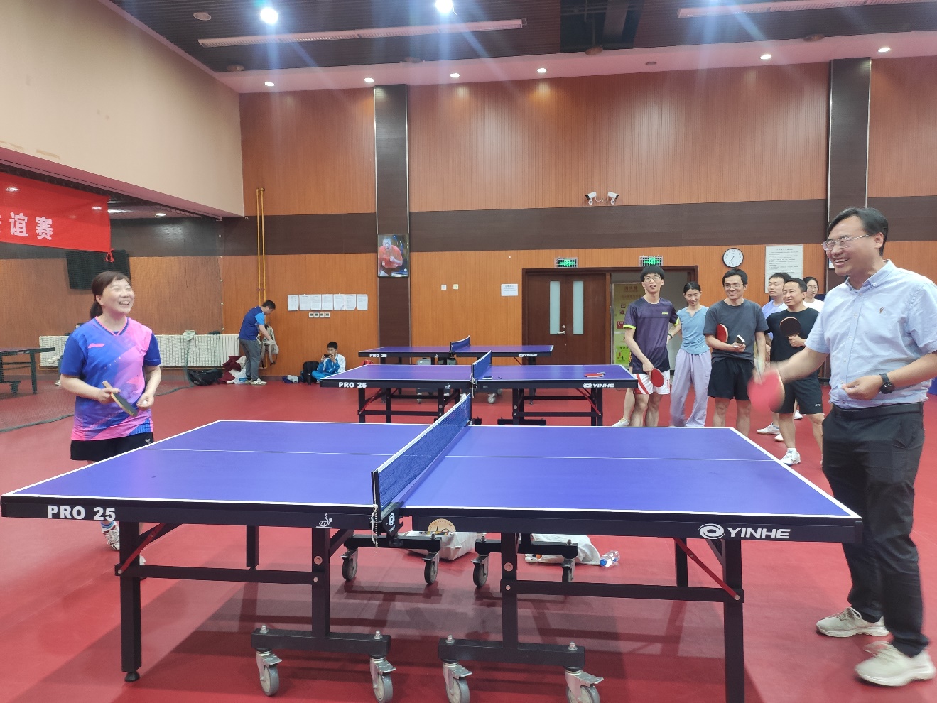 更精彩的是,在决赛决胜盘混双比赛的决胜局中,尽管面临从5:2被对手顽强追至5:5的严峻挑战,但邵老师和向老师毫不气馁,敢于放手一搏,最终成功锁定胜局。整场比赛中,我们全体成员均展现球不落地永不言弃的拼搏精神。感谢张铭老师辛苦组织这次比赛,学院为本次比赛提供了比萨丰厚的奖品和饮用水保障,让校友和在校师生们以球会友,并且体验到乒乓球运动的魅力。期待明年校友杯再见!