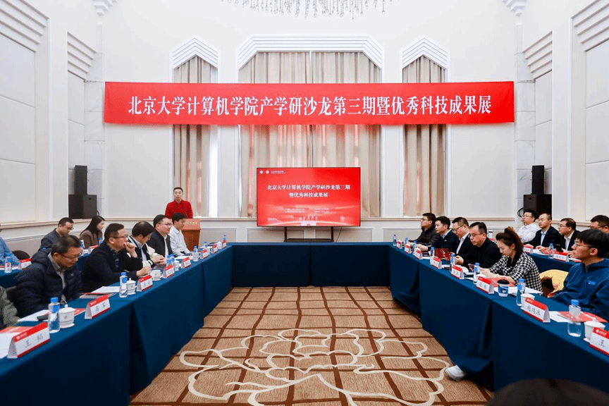 当日下午,产学研合作沙龙暨优秀科技成果展在百年纪念讲堂同步举行。活动由北京大学科技开发部支持、计算机学院主办,北大科技园协办,吸引了校内外专家学者以及近20家企业和政府机构共70余位代表参会。