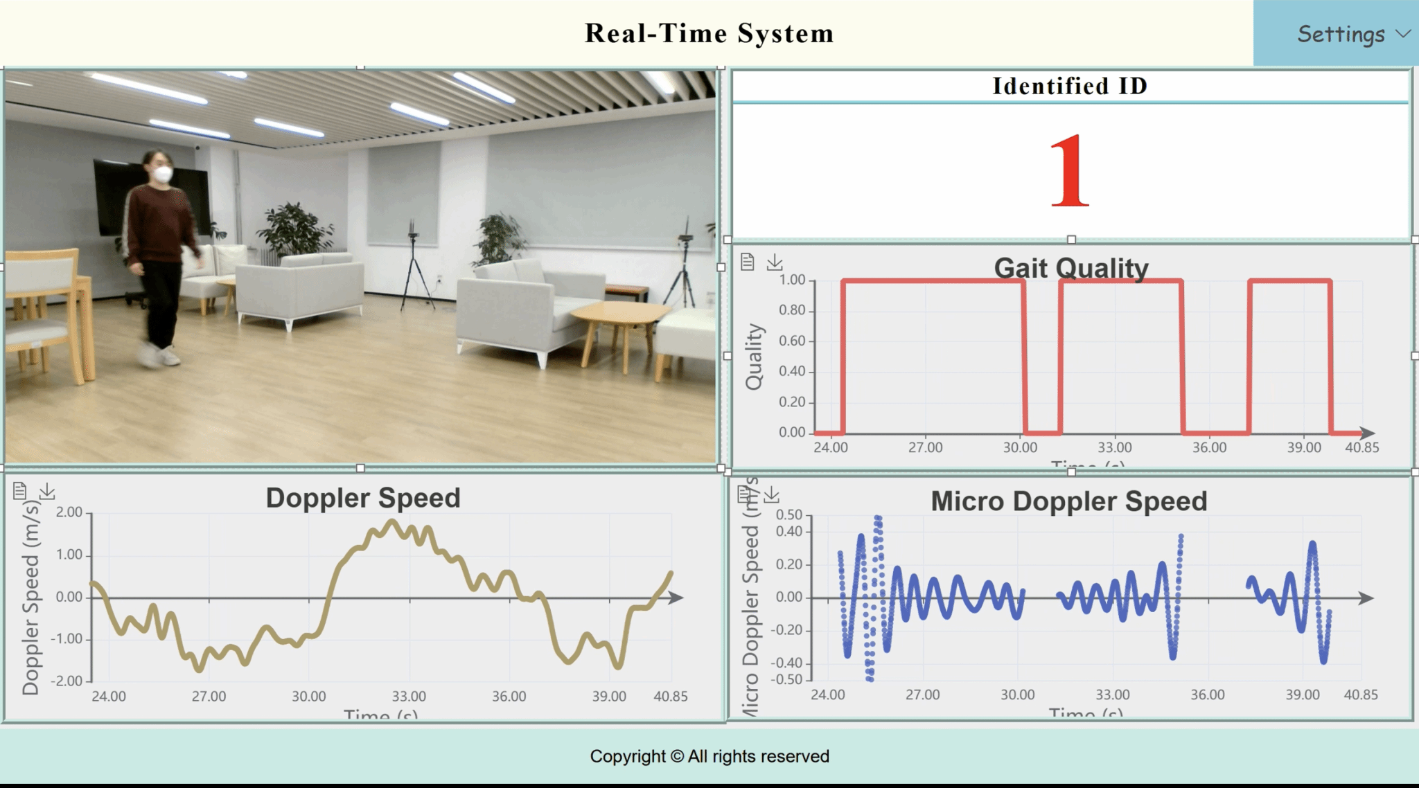 步态识别在用户认证、安防监控、智慧空间等应用中发挥着重要作用。基于Wi-Fi的步态识别技术具有非侵扰、低成本的优势。然而,现有的系统要求部署多对Wi-Fi设备或者限定用户的行走轨迹,而且需要采集大量的数据用于模型训练。这些要求限制了系统的实际部署与应用。针对这些关键难题,PKU-WISE团队首次提出了基于CSI差分范式的高精度微多普勒估计方法,可支持在单对Wi-Fi设备上提取多个与位置和朝向无关的步态特征。基于孪生神经网络和大语言模型两种方案,团队实现了仅需单个训练样本的Wi-Fi步态识别系统。