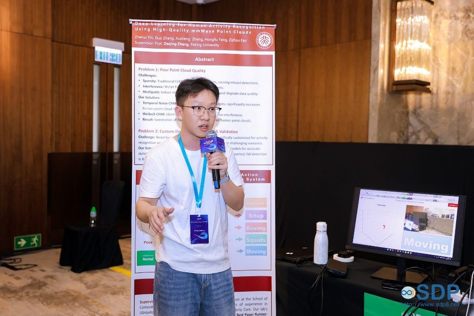 在总决赛的现场演示环节,该系统面对空间狭小、多径干扰严重且现场布局临时调整的严苛挑战,无需现场重新训练便实现了对所有动作的精确、实时识别。其出色的实时性和鲁棒性赢得了在场领域知名教授和头部企业代表的高度认可,最终成功摘得桂冠。