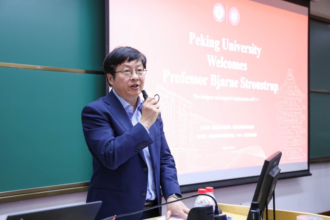 胡振江在致辞中对Bjarne Stroustrup院士的来访表示热烈欢迎。他指出,今年对于 C++ 语言发展具有重要意义,同时也是 C++ 与系统软件领域学术交流持续深化的重要节点。在这样一个具有里程碑意义的时刻,Stroustrup博士能够亲临北大,为师生带来关于“现代C++的跨世纪演进”的深度分享,无疑是一份珍贵的学术礼物。