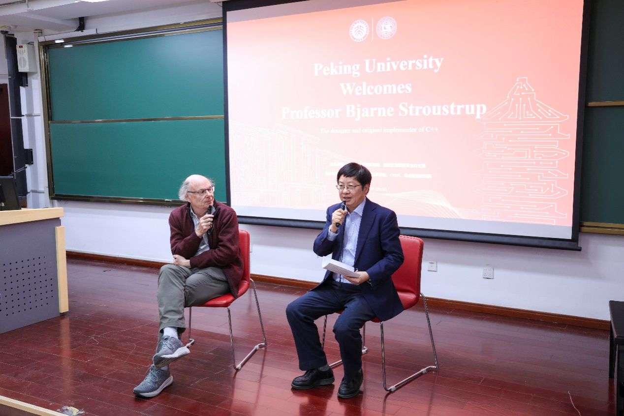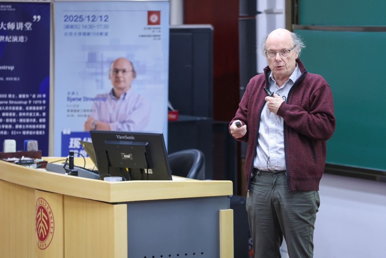 12月12日下午,北京大学“新工科讲堂”第11期暨计算机学院“大师讲堂”第9期活动在北京大学理科教学楼108教室举行。本次活动邀请“C++之父”、美国国家工程院院士Bjarne Stroustrup以“现代C++的跨世纪演进”为题作报告,华为科学家咨询委员会CTO王纪奎, CSDN高级副总裁、奇点智能研究院院长李建忠也分别以“科技预见与未来愿景”“AI范式转换及对计算机学习的思考”为题作分享,为现场师生呈现了一场精彩的学术盛宴。本次活动由北京大学讲席教授、计算机学院院长胡振江,北京大学博雅长聘副教授、计算机学院院长助理许辰人共同主持。
